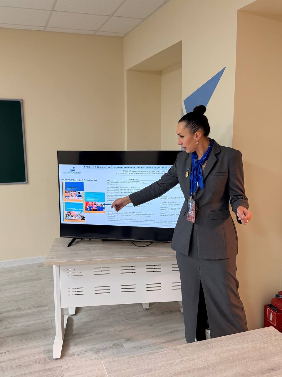 Опыт БГПУ им. М. Акмуллы очно представила главный специалист центра развития компетенций Акмуллинской академии развития детей и семейного образования ЦРК «Соты», преподаватель кафедры ДПиП, магистр образования Валентина Николаевна Кинцель, выступив с докладом на тему: «Современные подходы к организации родительского просвещения в системе начального, средней общего образования». В ходе которого представлен уникальный опыт полного цикла - от теоретической разработки модели до ее внедрения, масштабирования и оценки эффективности.