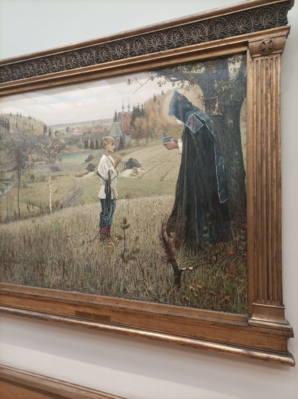 Почти случайная встреча в деревне Комякино позволила художнику найти образ главного героя картины. Нестеров пишет об этом так: «…я заметил девочку лет десяти, стриженую, с большими широко открытыми удивленными голубыми глазами, болезненную. <…> Я замер, как перед видением. Я действительно нашел то, что грезилось мне: это и был «документ», «подлинник» моих грез…»