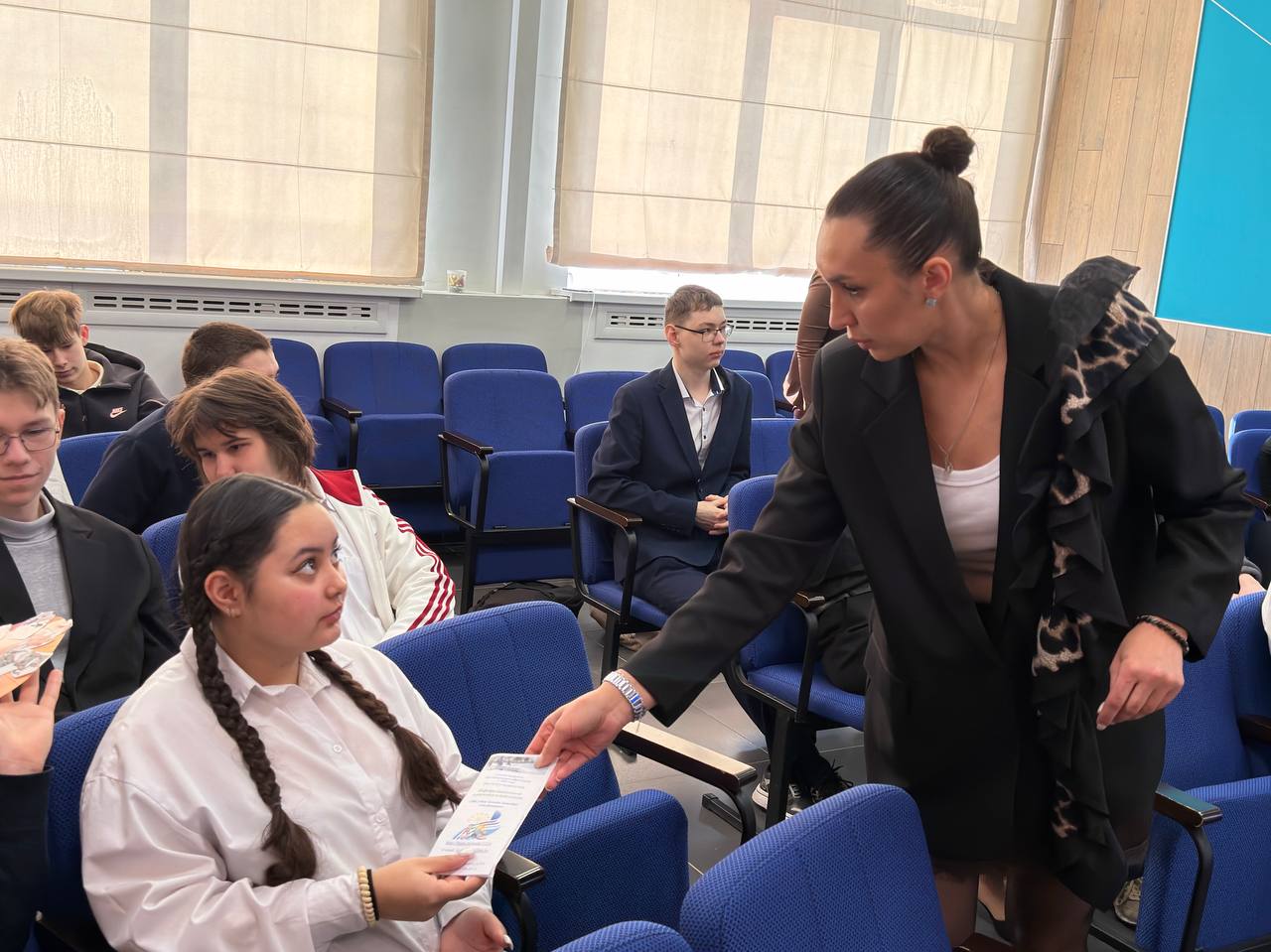 Встреча со школьниками состояла из двух смысловых блоков. В первой части Валентина Николаевна и студенты подробно рассказали об условиях поступления в университет, особенностях обучения на кафедре дошкольной педагогики и психологии, а также об активной внеучебной жизни студентов — научных кружках, педагогических проектах и волонтёрских инициативах.