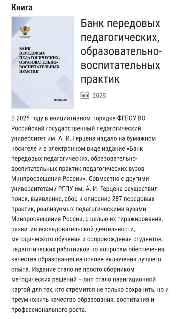 28.11.2025г. в условиях организации научного сотрудничества БГПУ им.М.Акмуллы и  РГПУ им.А.И.Герцена проведена работа с выпускным курсом. Герценовская внутривузовская олимпиада для поступающих в магистратуру "Дошкольное и начальное образование: взгляд в будущее". На кафедре ДПиП осуществлено научно-методическое консультирование студентов выпускного курса по подготовке к  Олимпиаде для поступающих в магистратуру РГПУ им.А.И.Герцена.