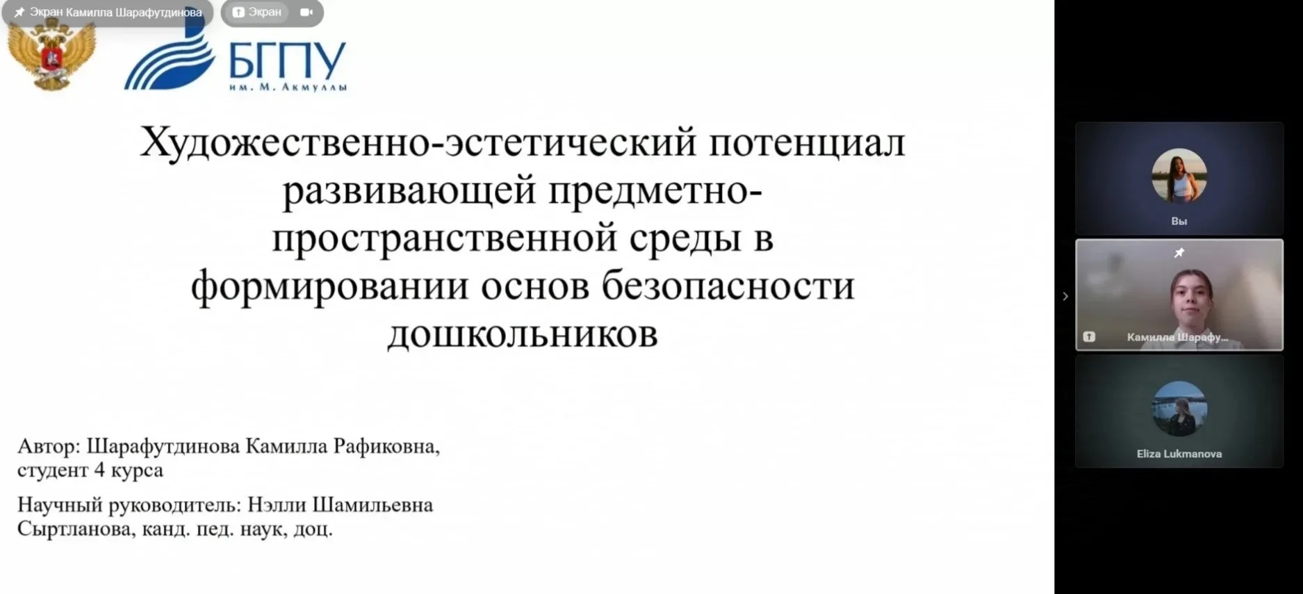 Шарафутдиновой К.Р. «Художественно-эстетический потенциал развивающей предметно-пространственной среды в формировании основ безопасности дошкольников»