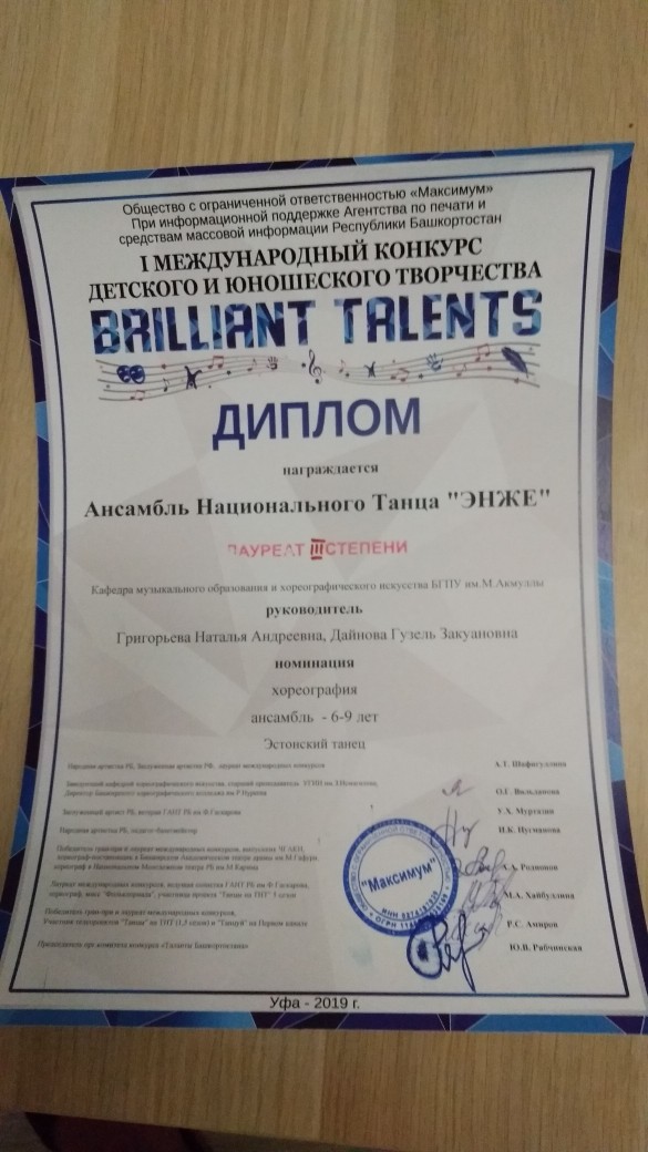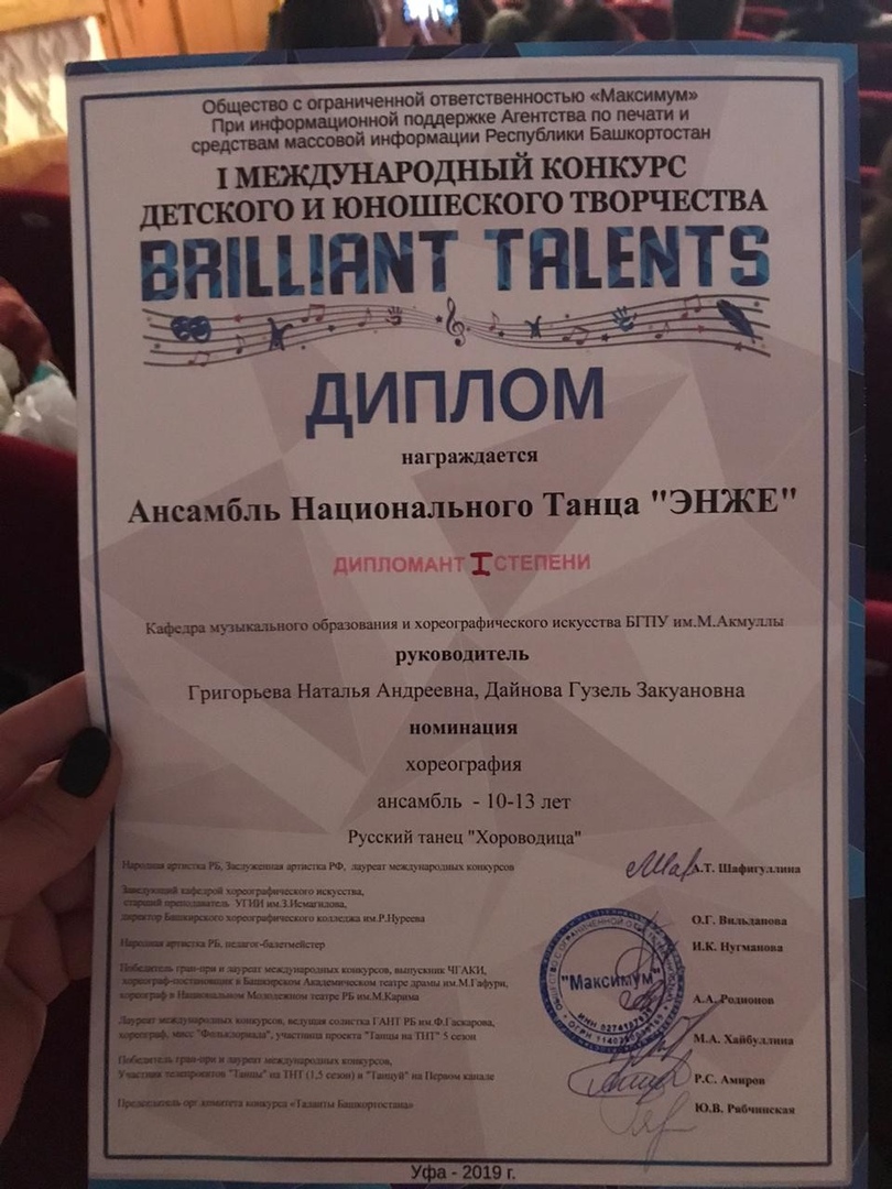 ​I Международный конкурс детского и юношеского творчества «Brilliant Talents» 2019г.