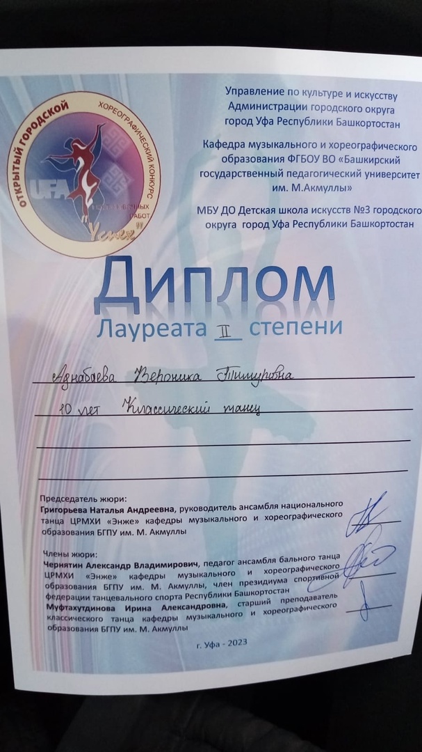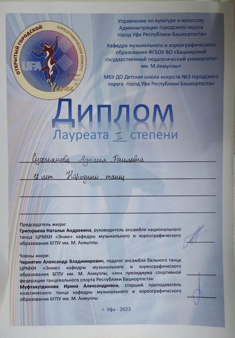 20 марта пять участниц Ансамбля Национального Танца "ЭНЖЕ" приняли участие в необыкновенном конкурсе: V городской хореографический конкурс постановочных работ в сольном и дуэтном исполнении "УСПЕХ". Организатором конкурса является МБУ ДО Детская школа искусств №3 городского округа город Уфа Республика Башкортостан. Соорганизаторы конкурса: Управление по культуре и искусству Администрации городского округа город Уфа РБ; Кафедра музыкального и хореографического образования БГПУ им.М.Акмуллы. Возрастная категория участников от 7 до 25 лет. На конкурс участники представляют постановочные работы, выполненные самими участниками конкурса, в собственном исполнении. Основной целью конкурса является - самореализация и самовыражение посредством танцевального искусства.