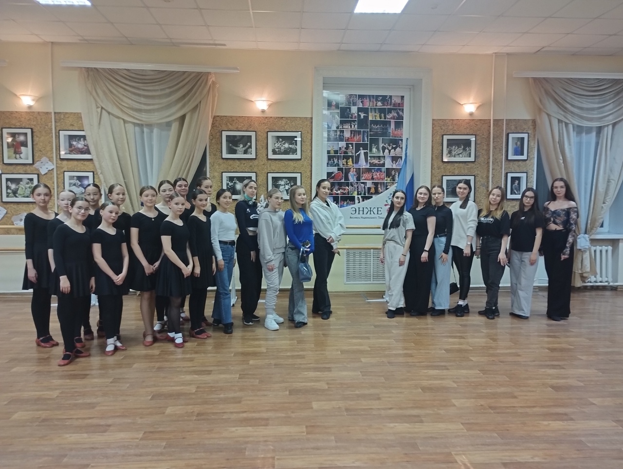 В феврале на базе Ансамбля Национального Танца ЭНЖЕ прошла студенческая ознакомительная практика Кафедры музыкального и хореографического образования БГПУ им. М. Акмуллы. Студенты ознакомились с работой ансамбля, посмотрели уроки в разных возрастных группах, приняли активное участие в процессе работы на занятиях. Амина Галиаскарова презентовала научную работу по народному танцу, обсудив со студентами, что же такое народный танец. Аднабаева Вероника дала задуматься над идеей хореографического номера "Журавушка", представив его, Екатерина Киселёва и Нургалеева Вилена раскрыли образы в номерах " Подарок" и Татарочка". Дети из младшей группы поиграли в народные игры со студентами и показали постановку башкирского танца. Старшая и средняя группы вместе со студентами окунулись в методику классического танца.