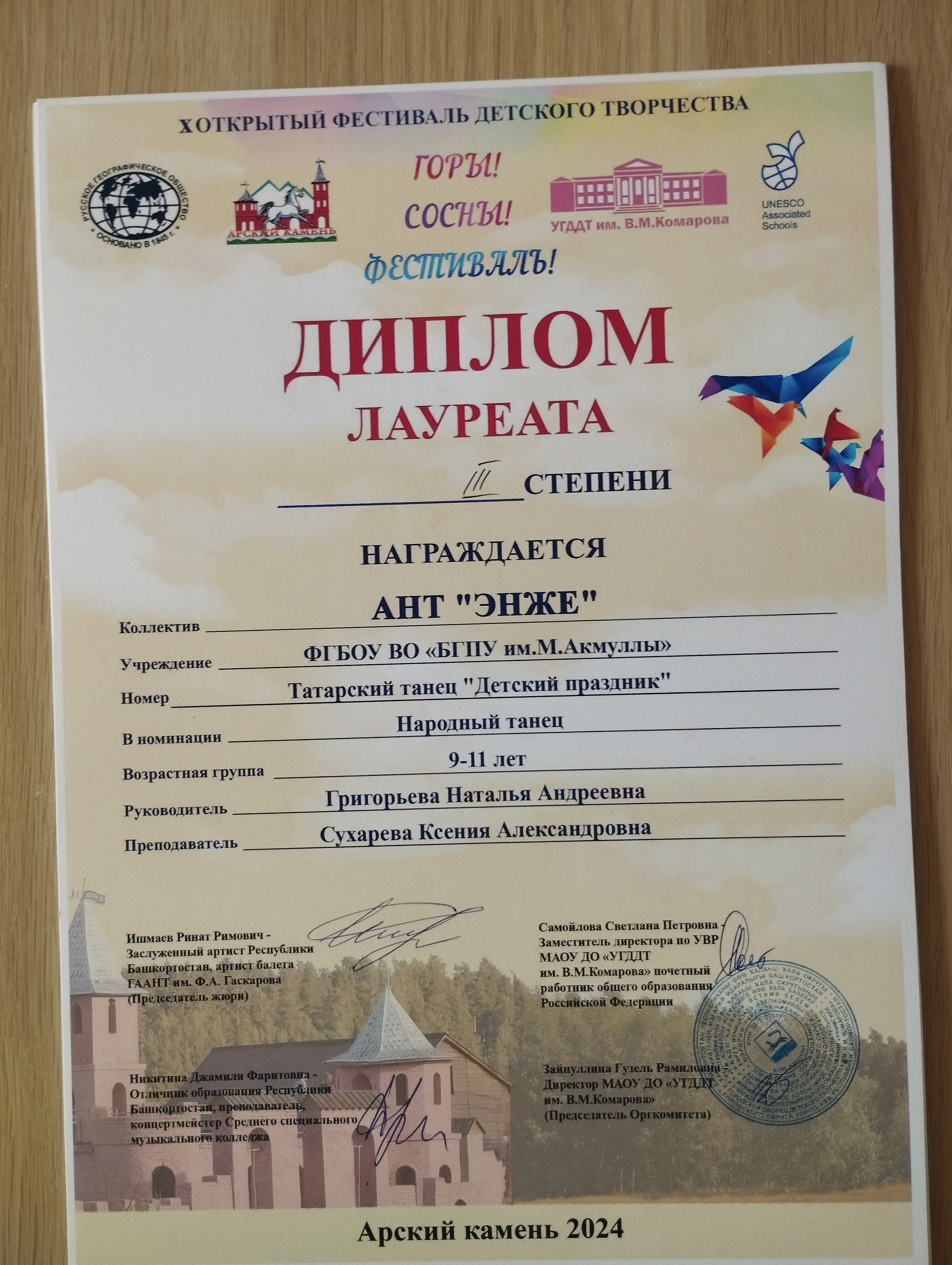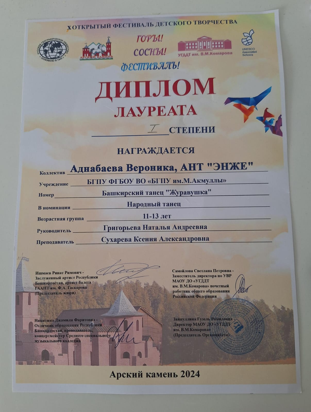 6.Башкирский танец «Журавушка», Аднабаева Вероника (11 лет, соло) - Лауреат 1 степени.