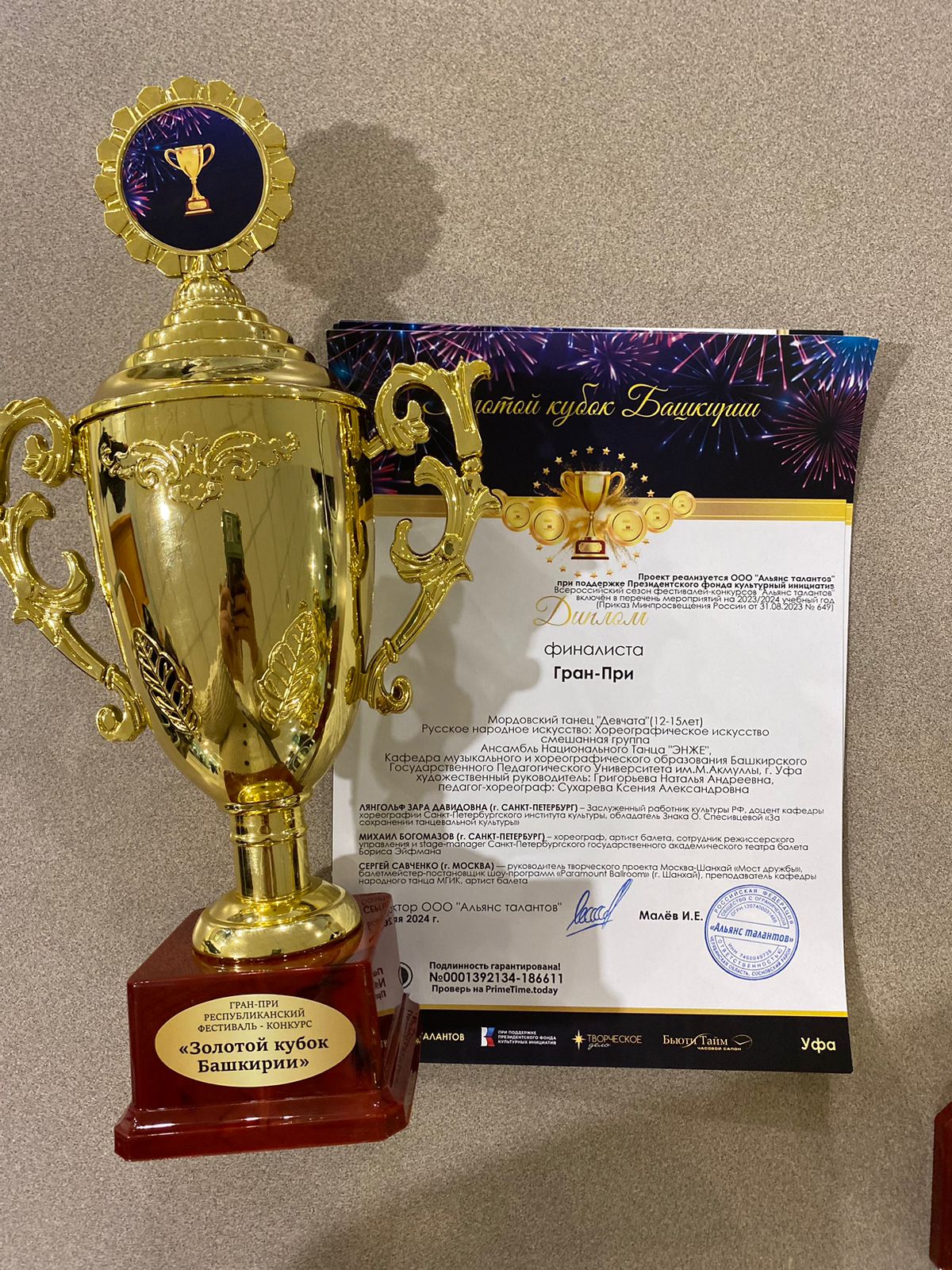 Ансамбль Национального Танца "ЭНЖЕ" стал участником Первого открытого республиканского фестиваля-конкурса «Золотой кубок Башкирии» и завоевал высшую награду Гран - при.