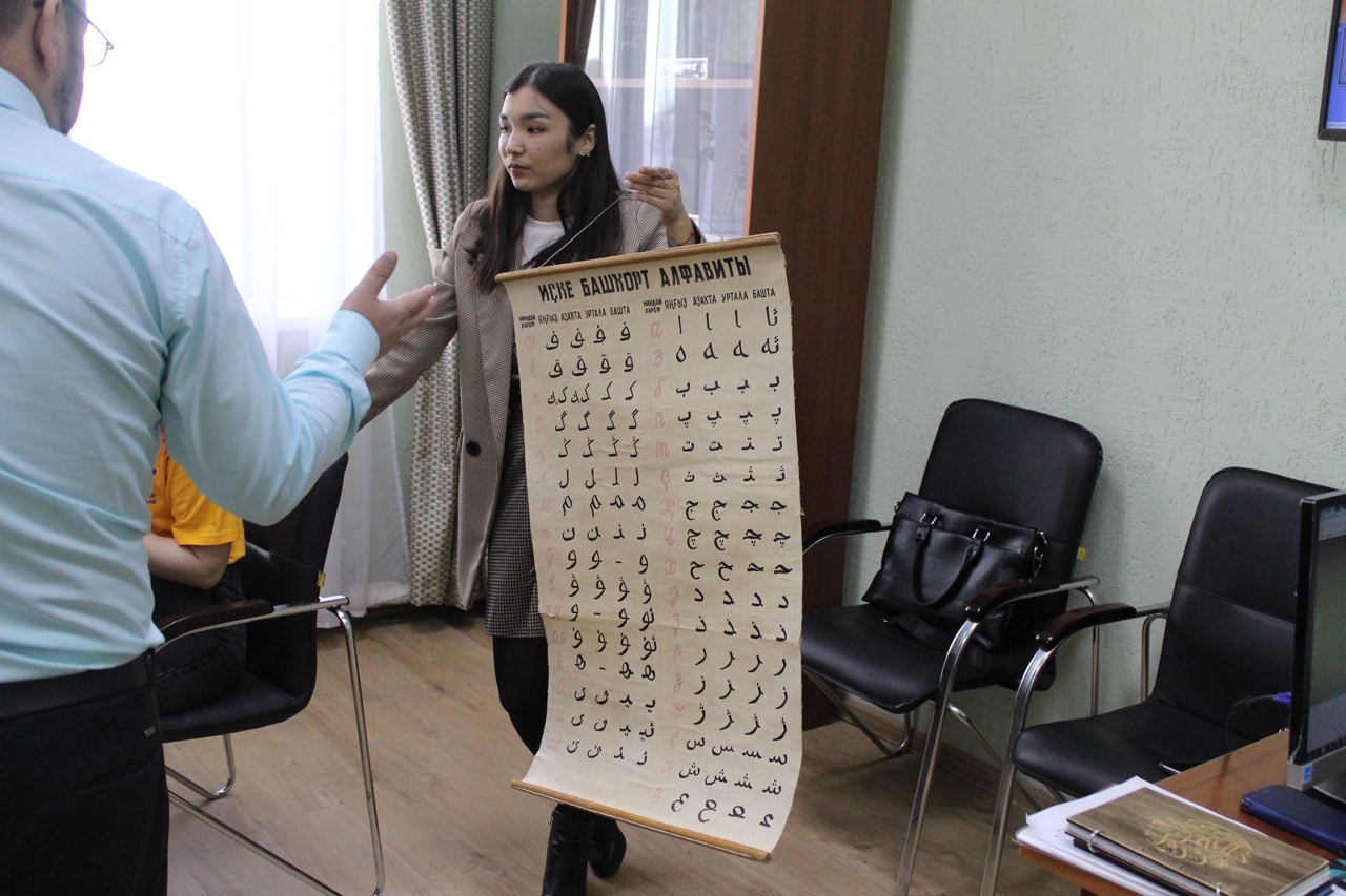 Студенты ГАГУ и докторант АРУ им. К Жубанова, проходящие стажировку на факультете башкирской филологии, познакомились с арабской каллиграфией в Центре восточных языков БГПУ им. М. Акмуллы. Руководитель Центра восточных языков А.Ю. Куланчин и студенты 5-го курса Казакбаева Я., Хабибуллина Н., Фаттахова А. рассказали гостям об особенностях изучения арабского языка в университете, продемонстрировали приложения для изучения арабского языка. Гости Центра написали свои имена на арабском языке и отметили, что арабская графика похожа на руническое письмо Орхоно-енисейских памятников, так как в обоих надписях не всегда гласные звуки оформлены в виде букв.
