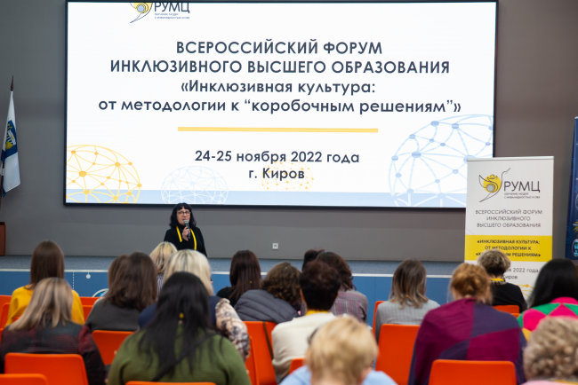 24-25 ноября 2022 года зав. кафедрой специальной педагогики и психологии Цилюгина И.Б. приняла участие в работе Всероссийского Форума инклюзивного высшего образования «Инклюзивная культура: от методологии к "коробочным решениям"» (г. Киров, Вятский государственный университет).