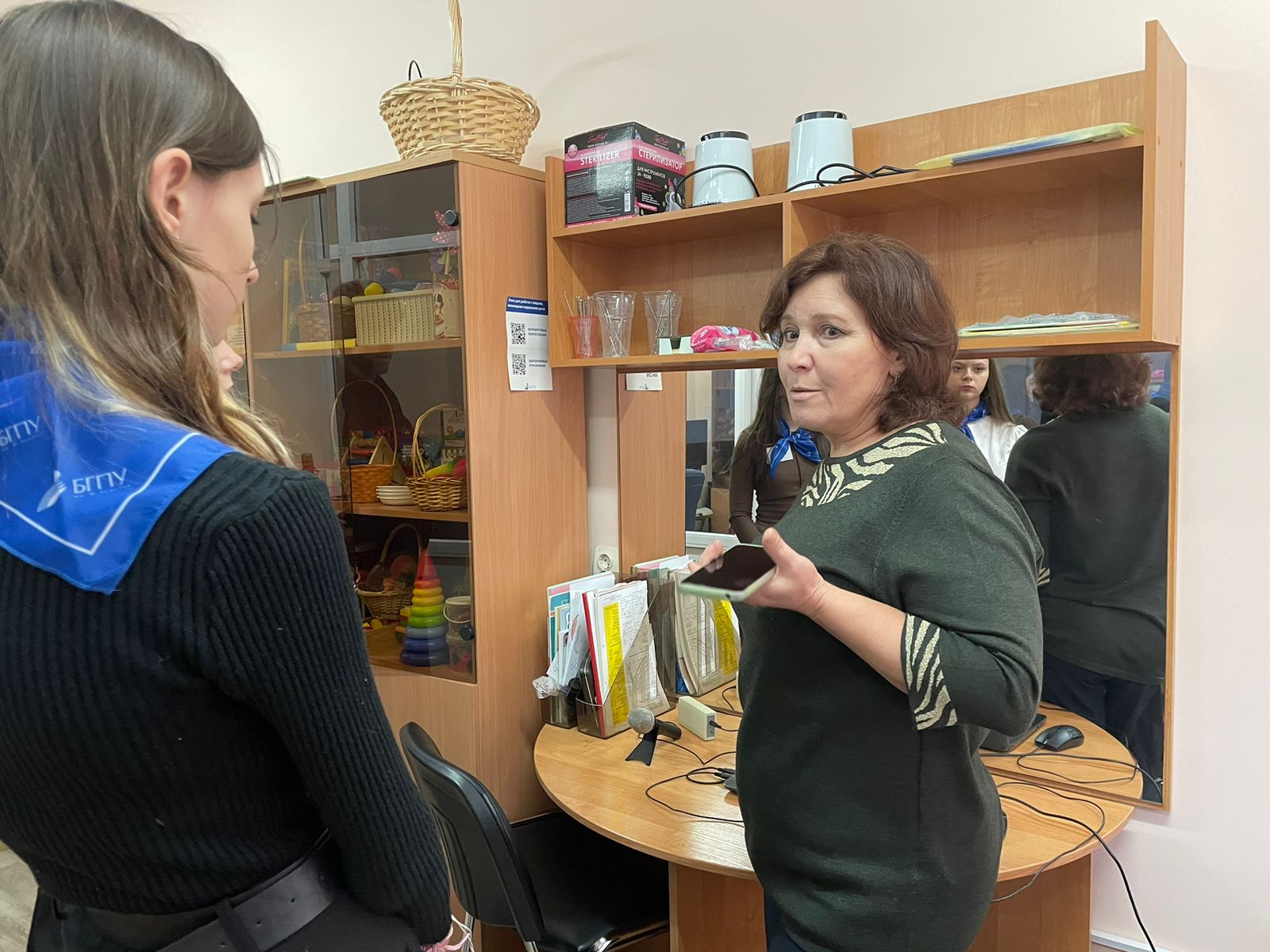 31 октября 2023 года в рамках осенней образовательной смены для детей и учителей из Луганской и Донецкой Народных Республик состоялась встреча с обучающимися школ ЛНР и ДНР. В ходе встречи доцент кафедры СПиП Сайфутдиярова Е.Ф. представила информацию обучающимся (4 человека) о направлениях подготовки кафедры, условиях поступления, правилах приема и особенностях сдачи вступительных испытаний по направлению подготовки «Специальное (дефектологическое) образование», продемонстрировала оборудование, необходимое для будущих специалистов в их профессиональной деятельности, а также ответили на вопросы обучающихся.