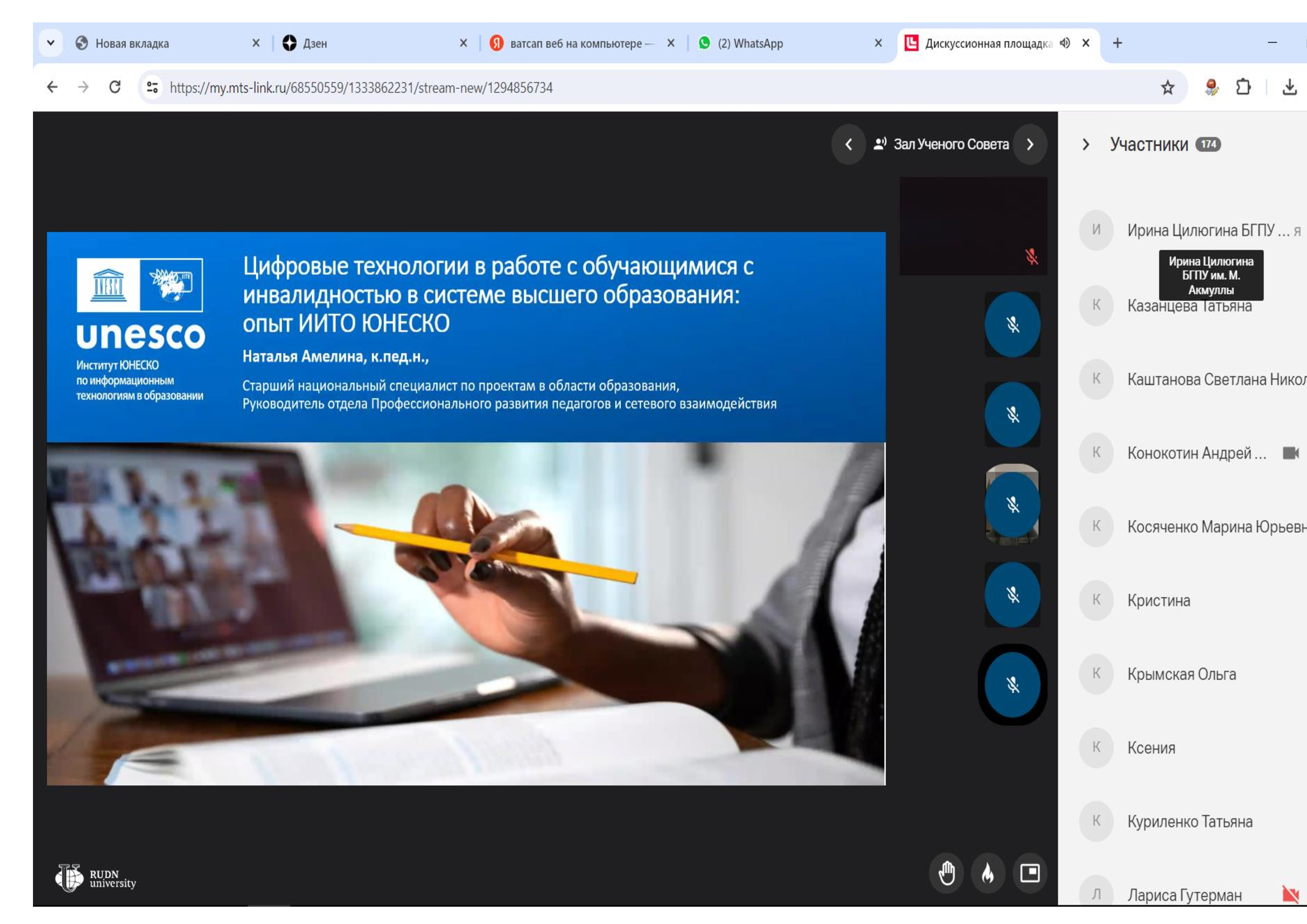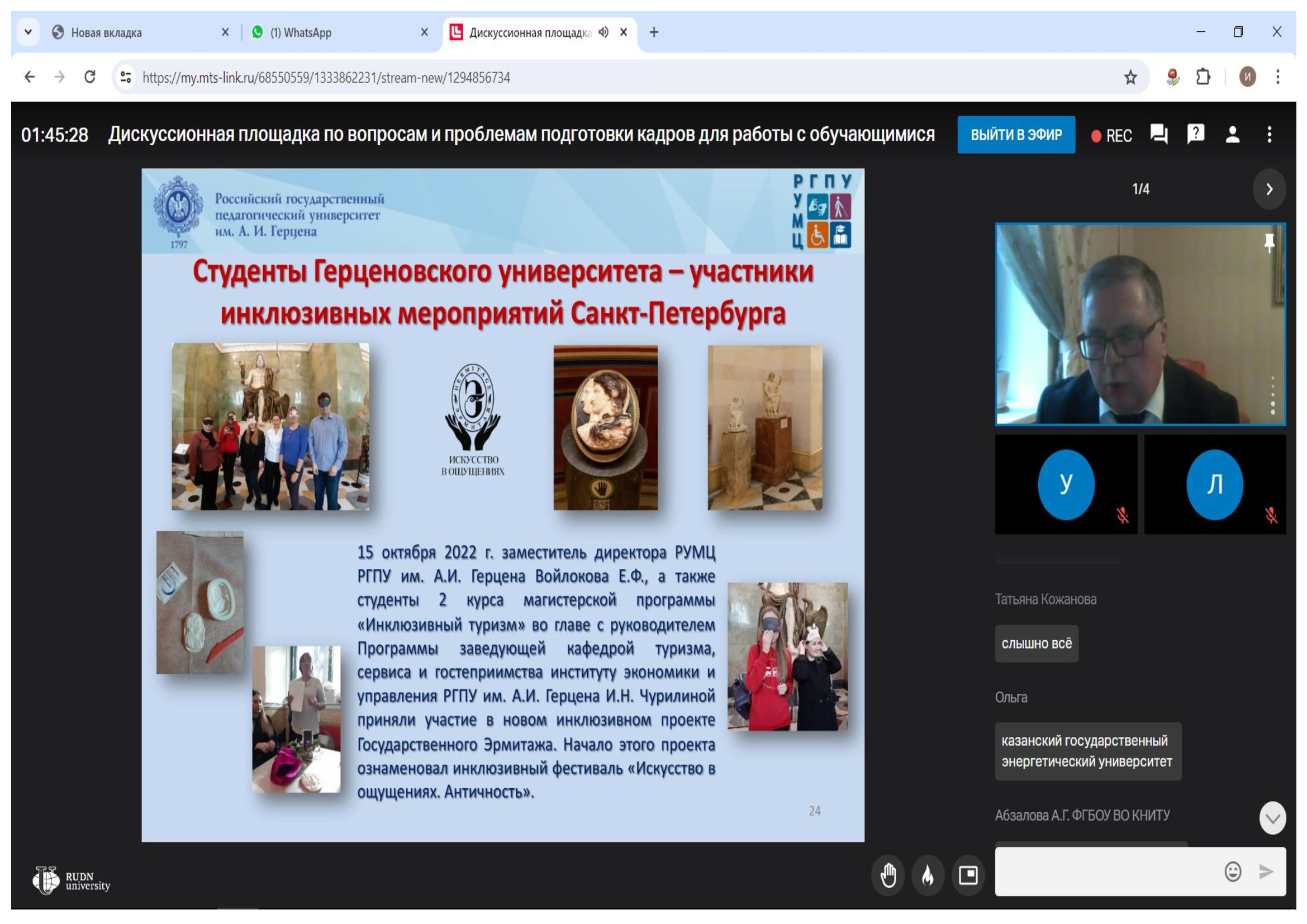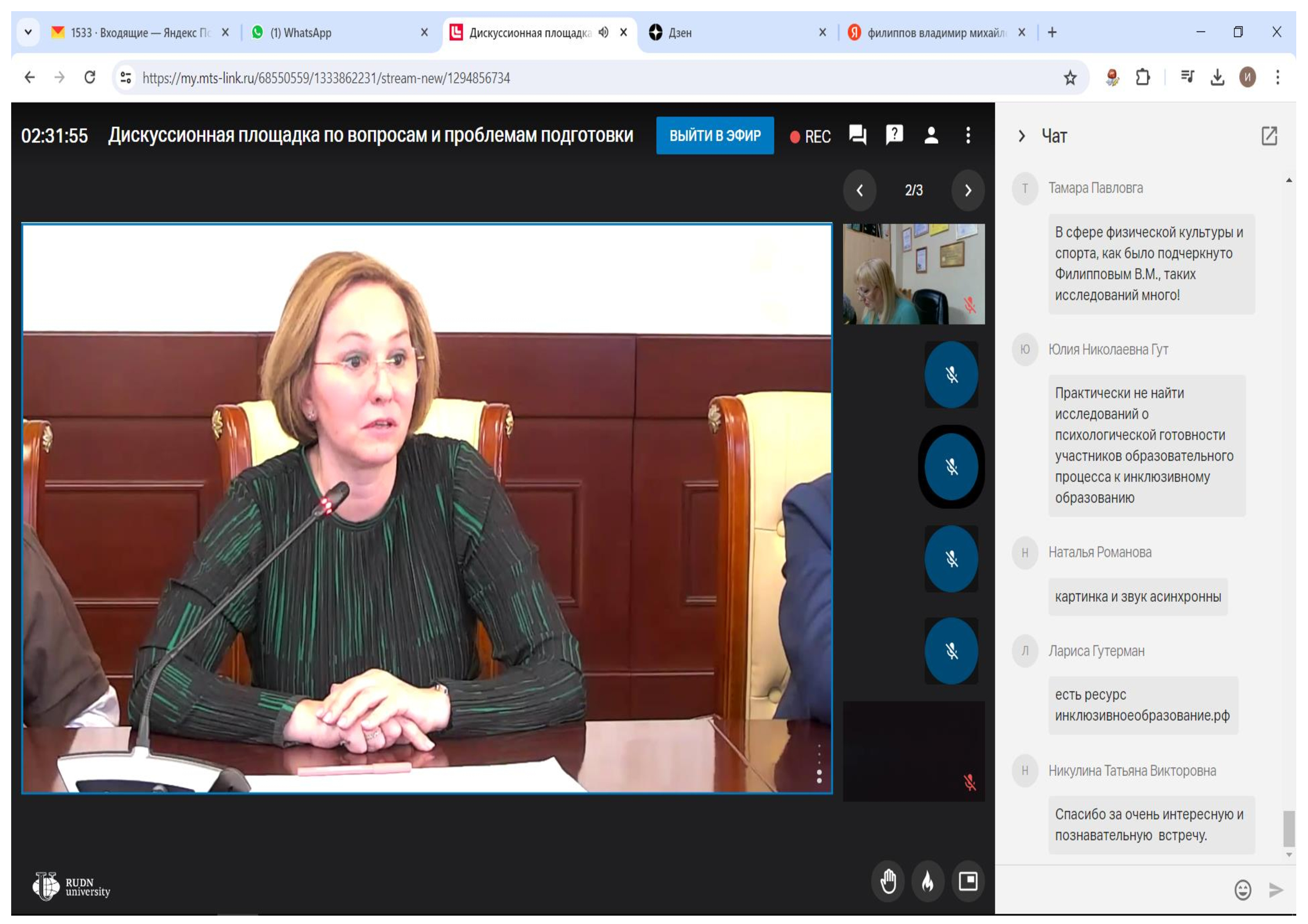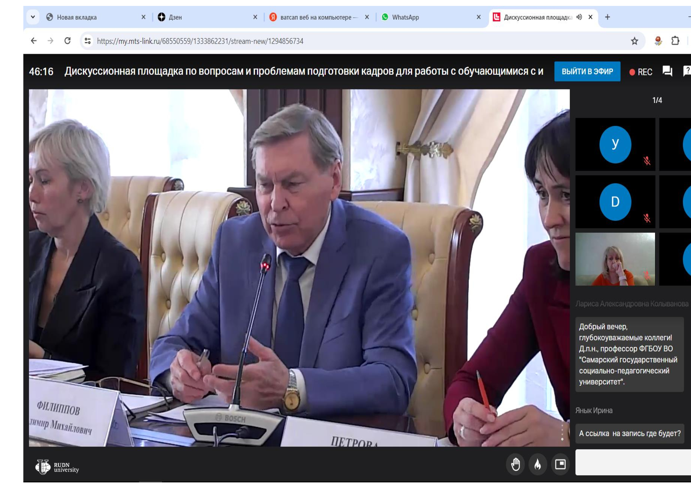 Зав.кафедрой специальной педагогики и психологии Цилюгина И.Б. приняла участие в работе дискуссионной площадки по вопросам и проблемам подготовки кадров для работы с обучающимися с инвалидностью в системе высшего образования