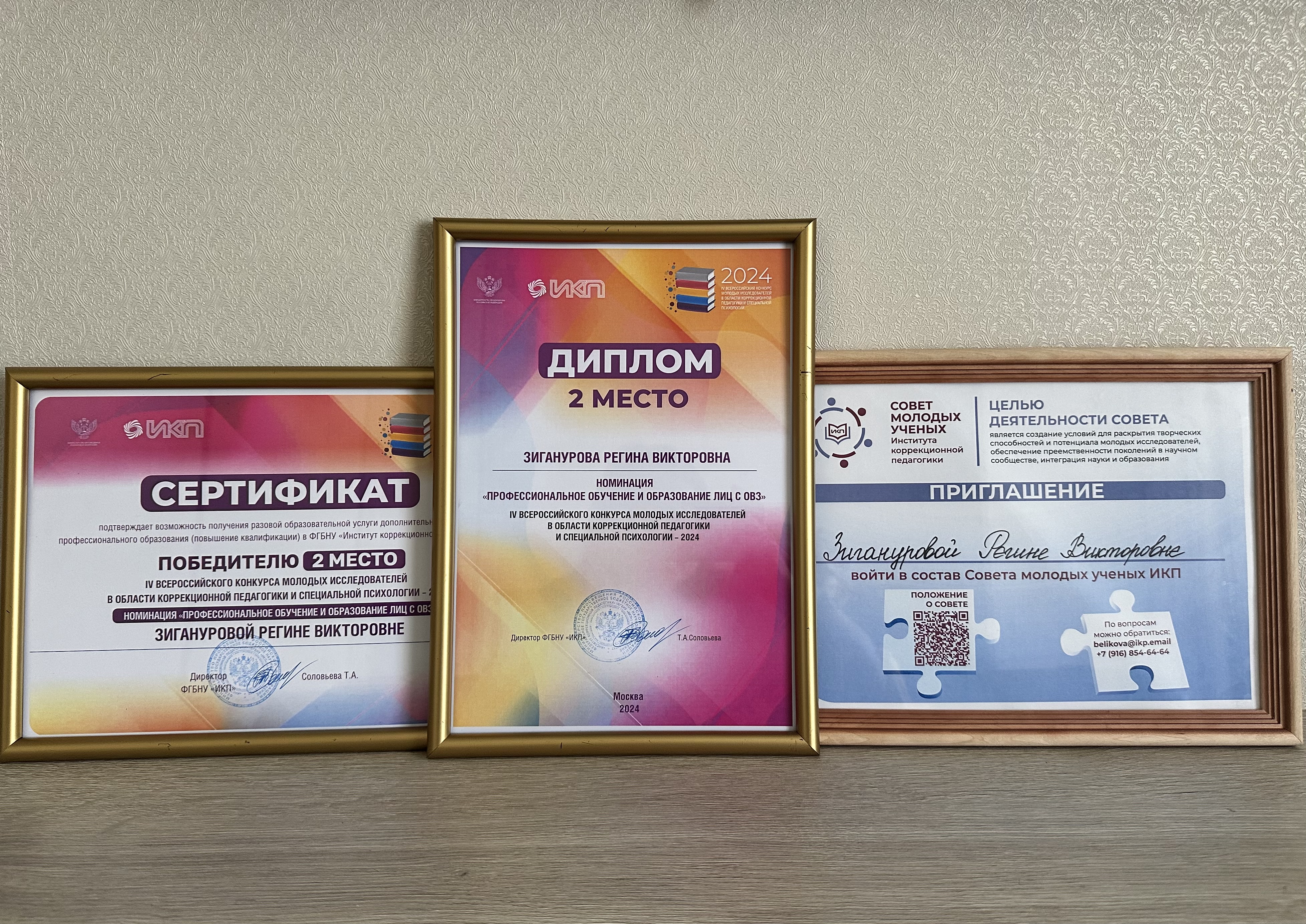 Ее, как участника, показавшего высокий уровень в представлении научно-исследовательских работ, пригласили войти в Совет молодых ученых Института коррекционной педагогики.