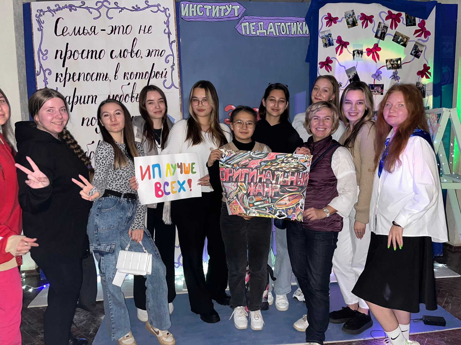 Благодарим студентов группы СОЛОГ 11-24 Шарипову Нигину, Ишенбаеву Аделину, Суколину Арину, студентов группы СОДД-11-24 Идиатуллину Чулпан, Гаврилову Анну, Карейша Киру за смелость, артистизм, искренние эмоции, которыми они делились со зрителями. Также выражаем благодарность студентке группы СОЛОГ-21-23 Кутьиной Дарье за постановку сценических номеров.