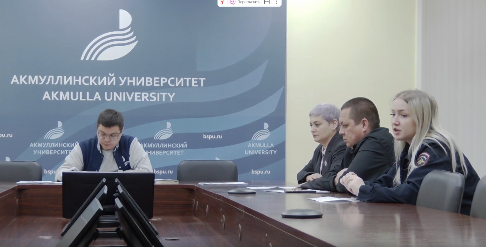 Началось собрание с приветствия и.о. ректора БГПУ имени М. Акмуллы Салават Сагитова, модератором встречи выступил Проректор по молодежной политике и международным связям Радик Юлбаев.