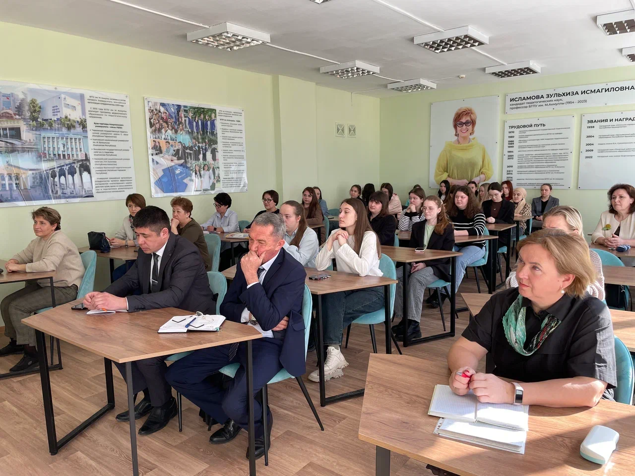 В Институте педагогики 25 марта 2025 года состоялись Дни карьеры для студентов 4 курса кафедры специальной педагогики и психологии и кафедры профессионального и социального образования (организаторы: зав.кафедрой СПиП Цилюгина И.Б., доц. кафедры СПиП Сайфутдиярова Е.Ф., отдел специального образования Министерства образования и науки РБ –начальник отдела Латыпова М.Х., главный специалист-эксперт Ахмадеева Ф.Г.). Перед обучающимися направления подготовки «Специальное (дефектологическое) образование», направленность (профиль) «Логопедия», «Дошкольная дефектология», направления подготовки «Психолого-педагогическое образование», направленность (профиль) «Психология и социальная педагогика» выступили специалисты – директора коррекционных школ для обучающихся с ограниченными возможностями здоровья, общеобразовательных школ, в которых осуществляется инклюзивное образование, заведующие дошкольными образовательными учреждениями, на базе которых функционируют группы компенсирующей направленности, Республиканского центра психолого-педагогической, медицинской и социальной помощи. Они рассказали о ситуации на рынке труда, востребованных специальностях по данным направлениям подготовки, а также предложили выпускникам вакантные должности. Перед студентами выступили главный специалист-эксперт отдела специального образования Министерства образования и науки Республики Башкортостан Ф.Г. Ахмадеева, зам.директор по УВР ГАОУ ОЦ «Йондоз» А.С. Газизова, директор МАОУ Школа № 70 им. Г.М. Подденежного Е.А. Милейко, зам.директора по дошкольному подразделению «Детский сад» МАОУ ЦО №69 с углубленным изучением отдельных предметов Д.В. Смирнова, заведующий МАДОУ Детский сад № 89 ГО г. Уфа Л.Ф. Захарова, директор ГБОУ Стерлитамакская коррекционная школа №25 для обучающихся с ОВЗ Р.Р. Усманов, директор ГБУ РБ РЦППМСП И.Ф. Идрисова.
