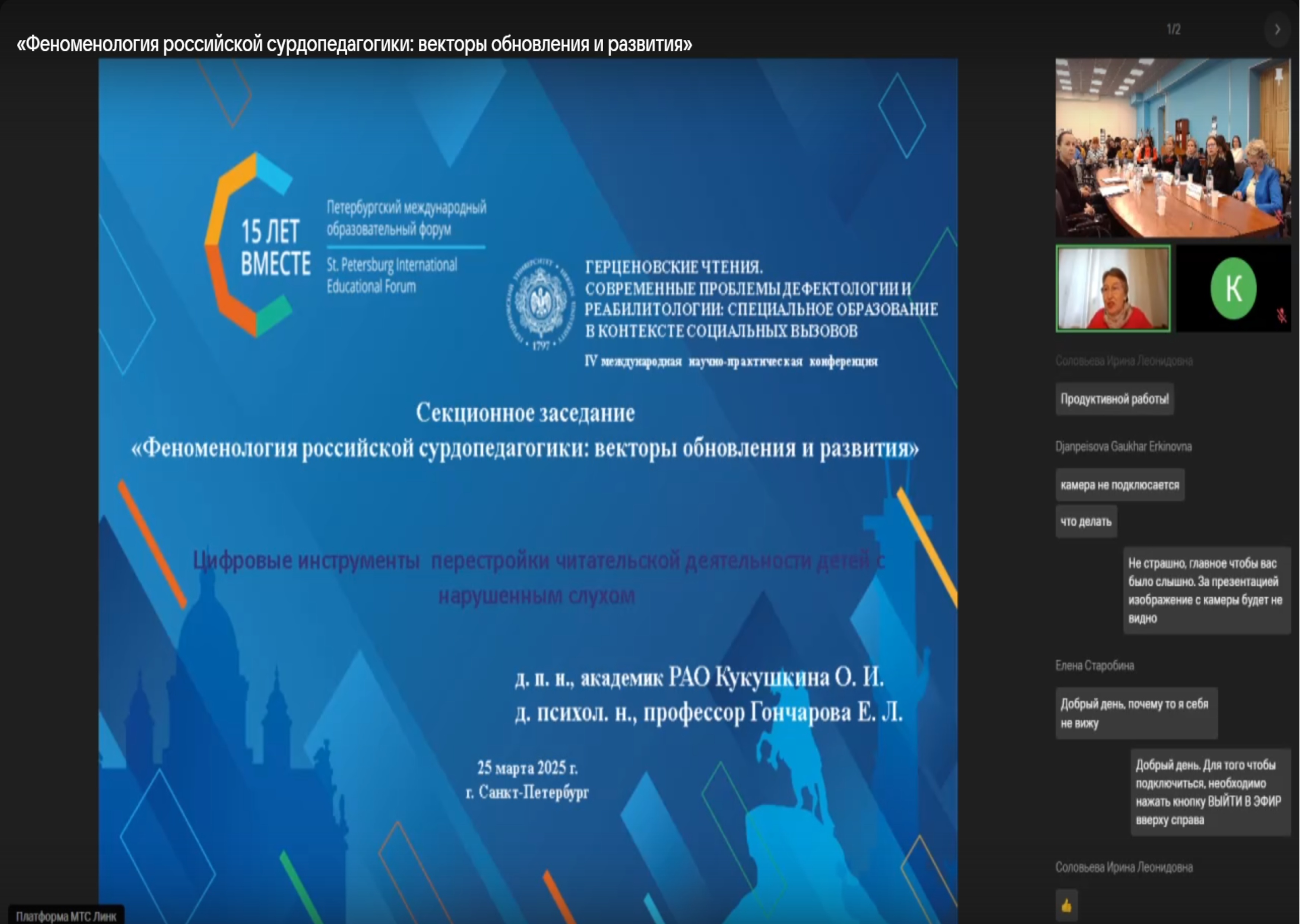 25 марта преподаватели и студенты кафедры специальной педагогики и психологии приняли участие в работе секции «Феноменология российской сурдопедагогики: векторы обновления и развития». Модераторами секции выступили Красильникова Ольга Александровна, д-р пед. наук, профессор, заведующая кафедрой сурдопедагогики РГПУ им. А.И. Герцена; Люкина Анна Сергеевна, канд.пед.наук , доцент кафедры сурдопедагогики РГПУ им. А.И. Герцена. С докладами в рамках работы секции выступили ведущие ученые и практики из разных регионов России и ближнего зарубежья, затронув фундаментальные и прикладные вопросы сурдопедагогики.