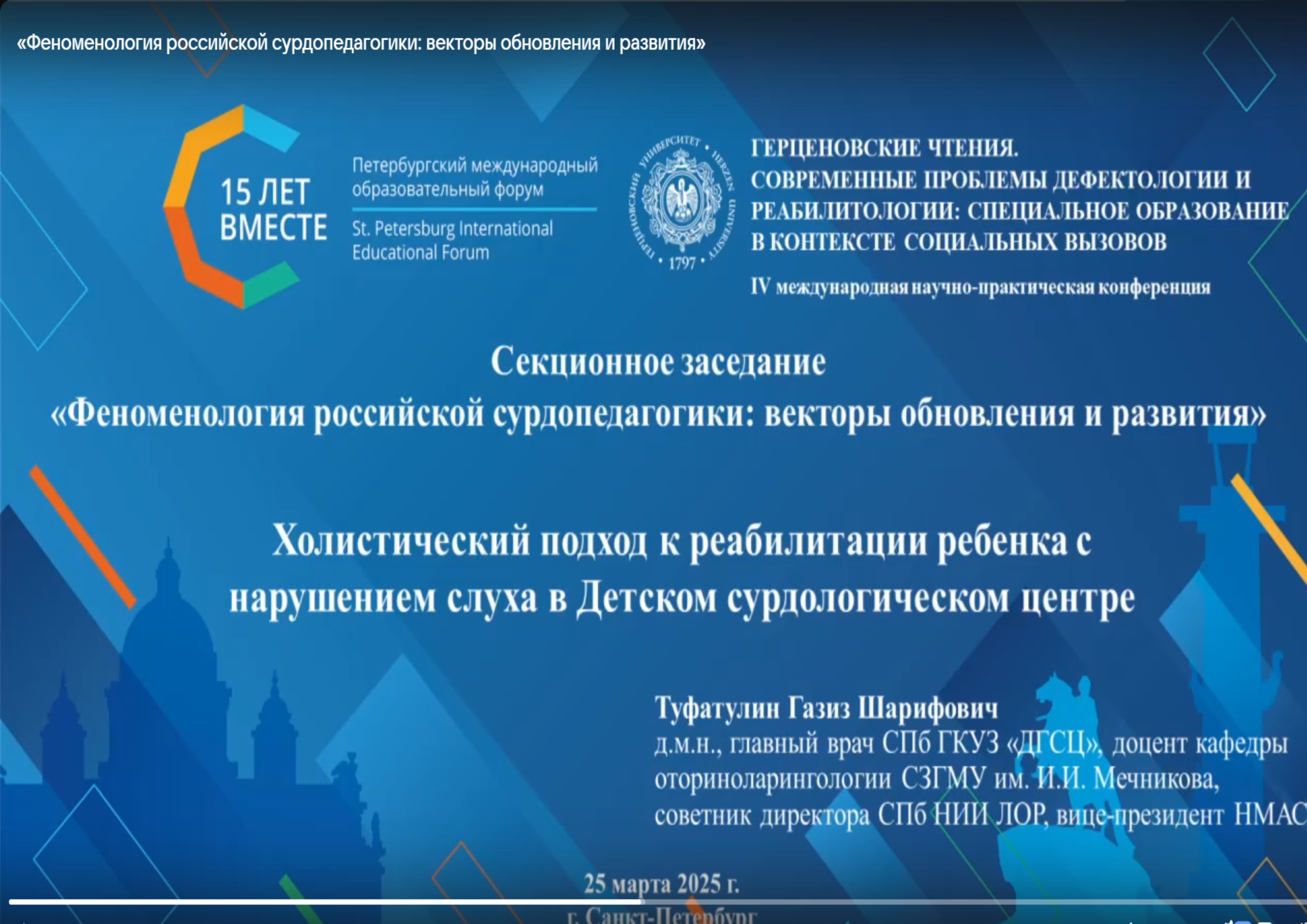 24-28 марта 2025 г. в РГПУ им. А.И. Герцена совместно с Общественным советом базовой организации государств - участников СНГ при поддержке Минпросвещения России проходит IV Международная научно-практическая конференция с международным участием «Герценовские чтения. Современные проблемы дефектологии и реабилитологии: Специальное образование в контексте социальных вызовов».