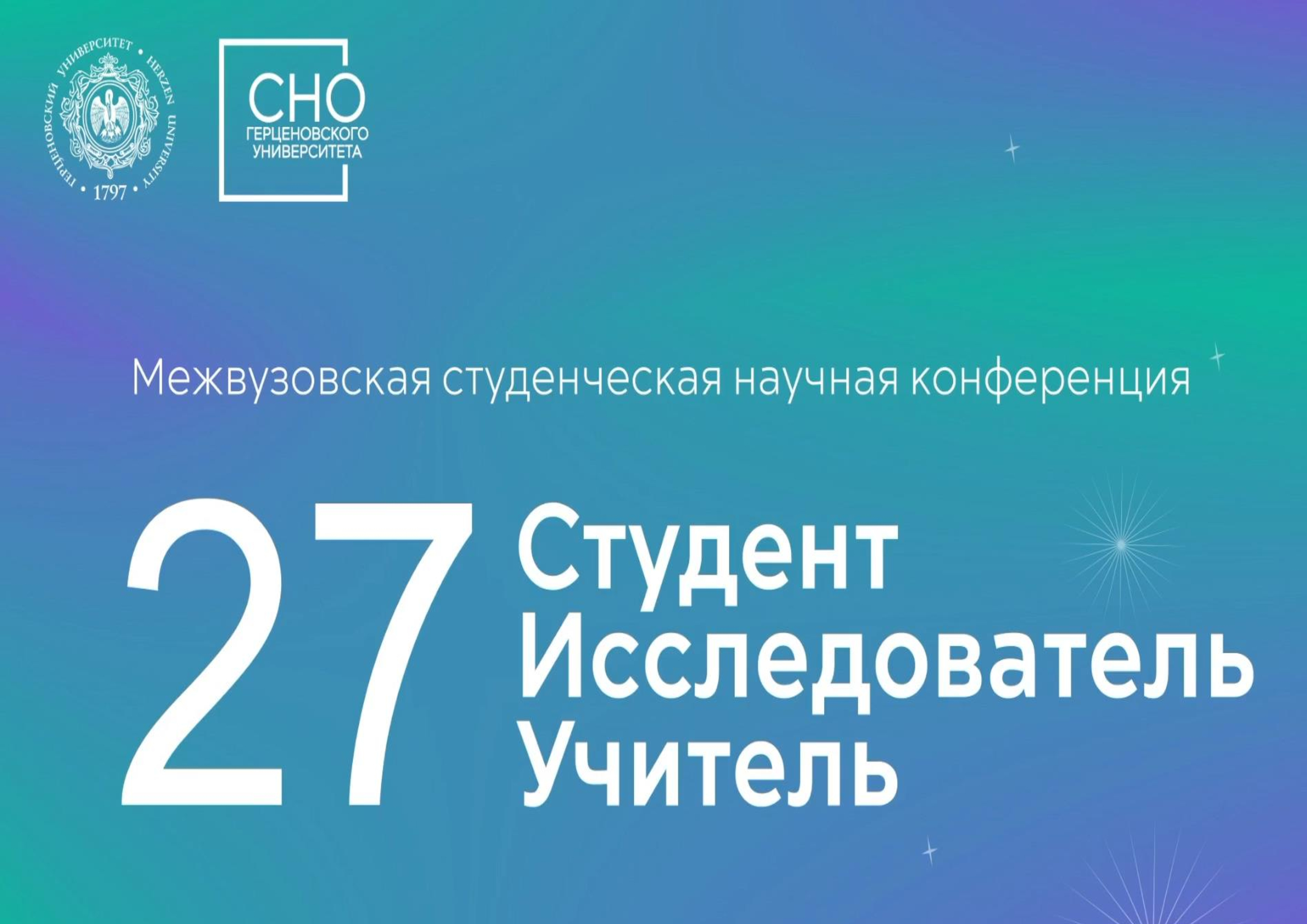С 7 по 18 апреля 2025 года в Российском государственном педагогическом университете им. А. И. Герцена проходит 27-ая Межвузовская студенческой научная конференция «Студент - Исследователь - Учитель».