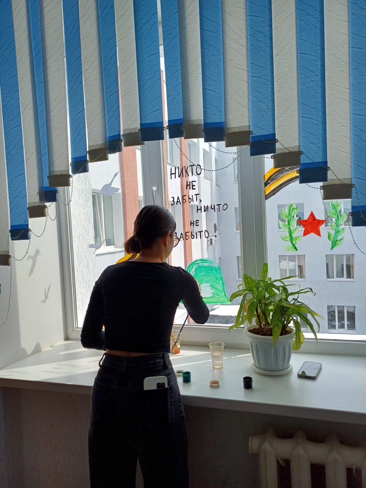 В преддверии 80-летия Победы в Великой Отечественной войны студенты 1 курса кафедры специальной педагогики и психологии приняли участие во Всероссийской патриотической акции «Окна Победы».