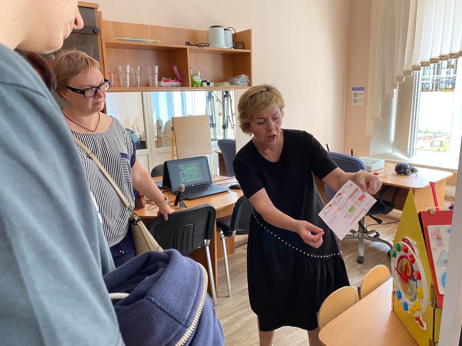 7 июня для педагогов общеобразовательных организаций г. Торез Донецкой Народной Республики, посетивших Институт педагогики, зав. кафедрой специальной педагогики и психологии Цилюгина И.Б. провела мастер-класс. Ирина Борисовна познакомили коллег с направлениями и профилями подготовки, реализуемыми на кафедре, особенностями организации учебного процесса, презентовали Центр развития компетенций «Мастерская специальных технологий инклюзивного образования», учебно-методические пособия преподавателей кафедры, поделились опытом подготовки специалистов в области специального (дефектологического) образования. В интерактивной форме участники мастер-класса обсудили использование диагностических методов в профессиональной деятельности педагога инклюзивного образования.