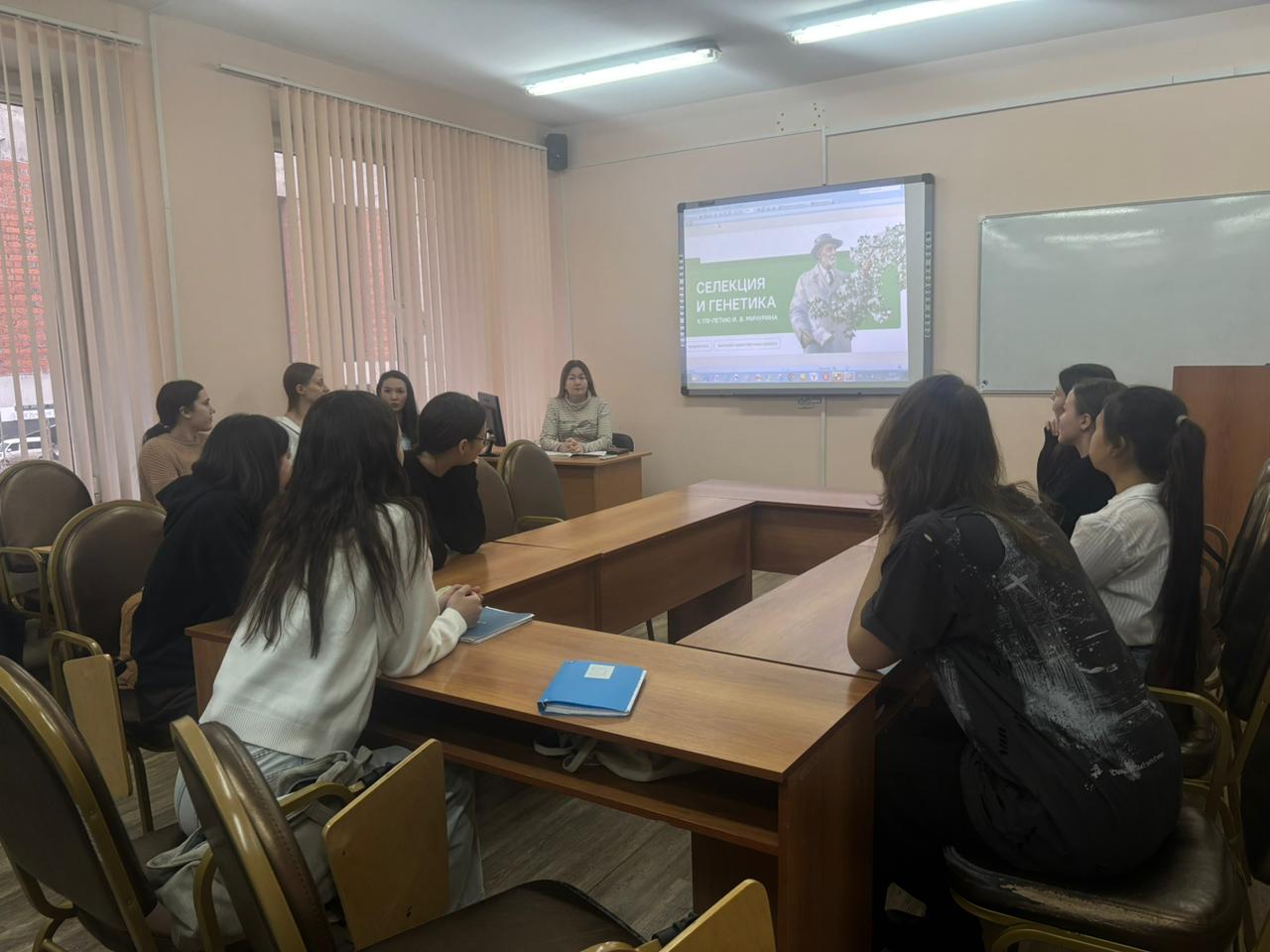 10 ноября 2025 года со студентами группы СОДД-11-25 (16 человек) в рамках проведения проекта РАЗГОВОРЫ О ВАЖНОМ состоялся кураторский час на тему «Селекция и генетика. К 170-летию И. В. Мичурина», который провела канд. пед. наук, доцент кафедры СПиП Ишмуллина Г.И. Студенты рассуждали о роли и значении селекции и генетики в развитии общества, о перспективах развития данного направления народного хозяйства; познакомились с деятельностью И. В. Мичурина, его вкладом в отечественную и мировую науку и практику; посмотрели видеоролик «Российские ученые-селекционеры», рассуждали о работе селекционеров и о том, где возможно использовать результаты их труда.