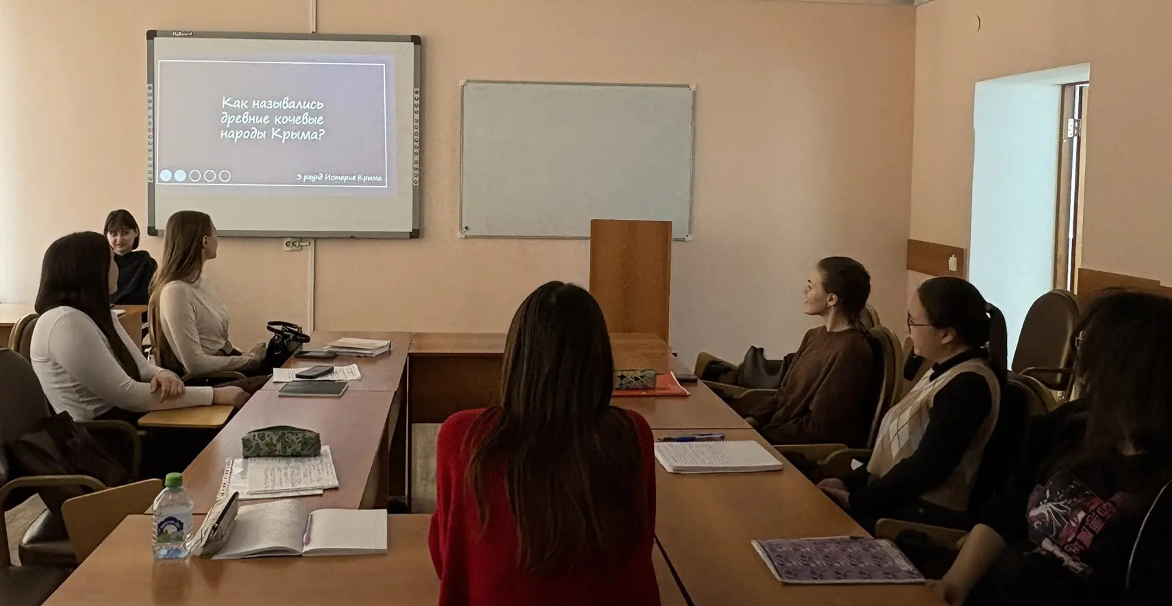 18 марта со студентами группы СОДД-21-24 под руководством старшего преподавателя кафедры СПиП Дильмухаметовой Р.С. в рамках проведения Всероссийской акции «Из Крыма и Севастополя с любовью», ко Дню воссоединения Республики Крым и города федерального значения Севастополя с Россией была организована и проведена викторина «Наш Крым. Наша Россия». Подготовила и провела викторину студентка группы СОДД-21-24 Аминова Адиля. За основу викторины была взята разработка специалистов ФГЬУ Росдетцентра «Одна страна – одна история». Студенты отвечали на вопросы, разделенных по уровням сложности: от простых, общеизвестных фактов до по-настоящему каверзных, требующих глубоких знаний истории Крыма.