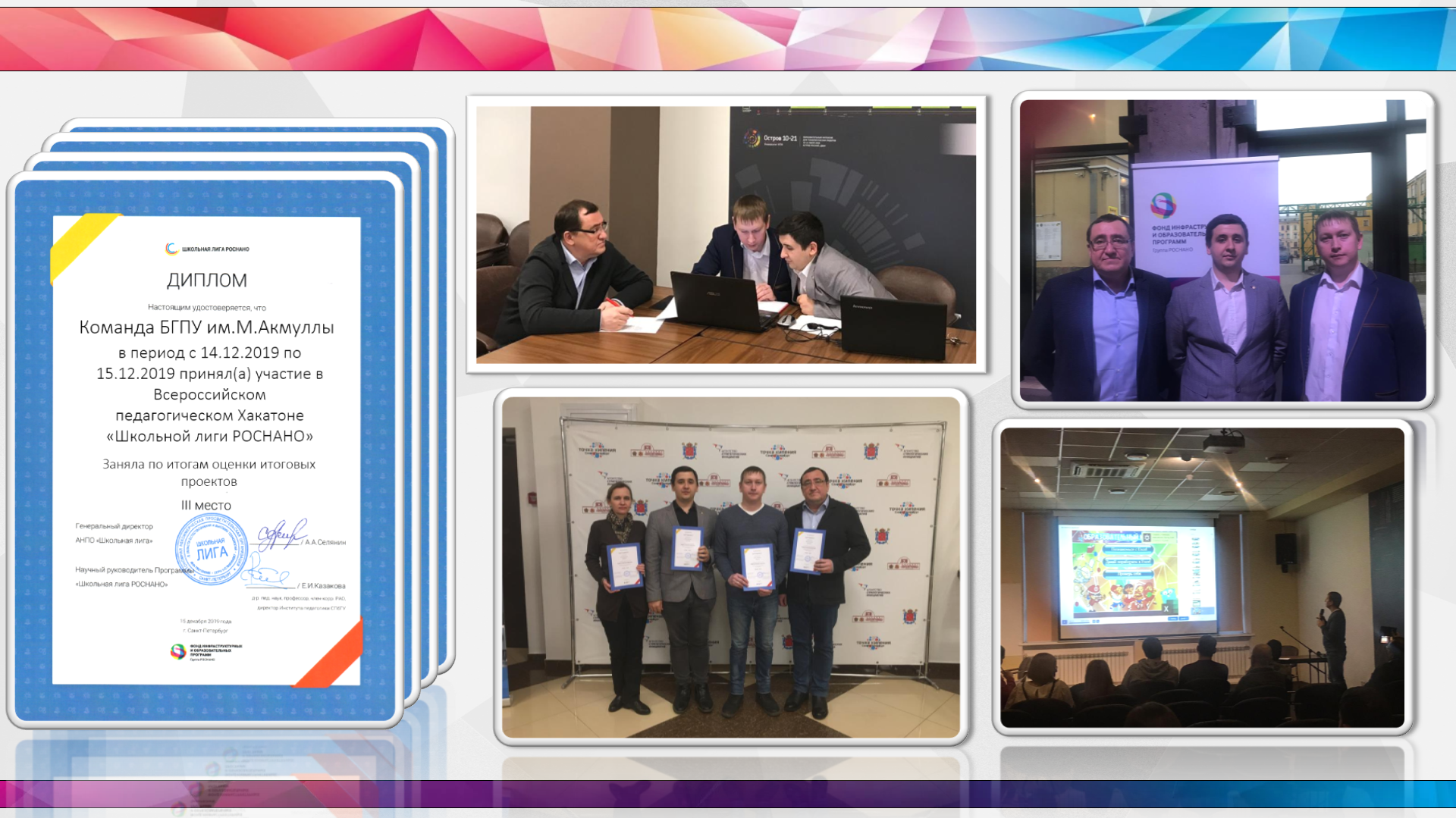 им. М. Акмуллы, приняла участие во Всероссийском педагогическом Хакатоне «Школьной лиги РОСНАНО» проходившего в городе Санкт-Петербург. Основной задачей Хакатона являлась разработка практико-ориентированных электронных курсов направленных на формирование компетенции.  Практико-ориентированные электронные курсы разрабатывались с использованием программного обеспечения iSpring Suite.