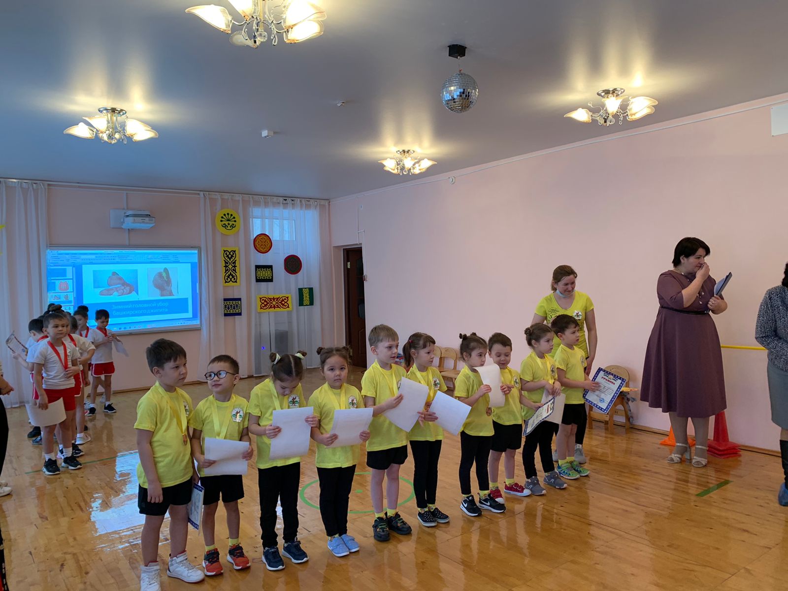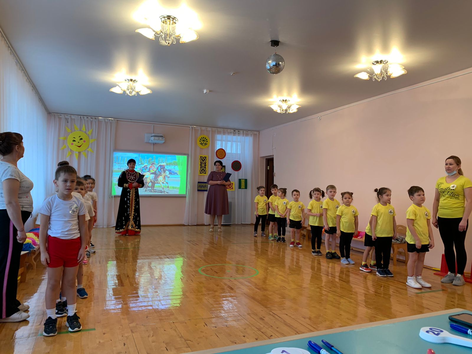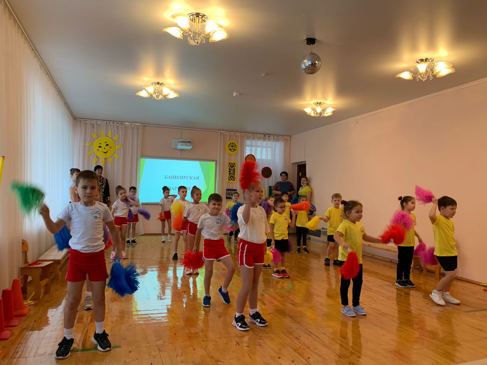 В ходе проекта «Разработка модели единого образовательного пространства организаций дошкольного и общего образования г. Уфы с углубленным изучением башкирского языка», который реализуется при поддержке Фонда содействия гражданскому обществу Республики Башкортостан, педагогический коллектив МАДОУ Детский сад №255 городского округа город Уфа РБ 6 декабря 2021 года организовал музыкально-спортивное развлечение “Ҡуңелле ярыштар” для детей старшего дошкольного возраста. Мероприятие  посвящалось   «Году здоровья и активного долголетия». Команды «Акбузат » и «Юлаевцы»  состязались в силе и ловкости, не уступая  друг другу, а за них переживали товарищи из группы поддержки и жюри: начальник отдела дошкольного образования и кадрового обеспечения Управления образования Администрации городского округа город Уфа Республики Башкортостан Баймухаметова А.Г., главный специалист по дошкольному образованию Управления по гуманитарным и социальным вопросам Администрации Ленинского района ГО г. Уфа РБ Шиянова Л.Л., заместитель директора ИНПО «Вектор развития » БГПУ Минюк Э.Г., доцент кафедры дошкольной педагогики и психологии ФГБОУ ВО БГПУ Шабаева Г.Ф. На мероприятие также были приглашены  заведующий МАДОУ «Башкирский детский  сад №51» ГалиуллинаГ.Я. и воспитатели  детского сада №51.   Педагоги детского сада №255 творчески подошли к организации соревнований: ведущие в национальных костюмах, персонажи башкирских сказок, оформленный красочными орнаментами зал, тематическая презентация,  занимательные конкурсы и состязания  вовлекали в мир спорта и традиций башкирского народа. Все дети из обеих команд были награждены медалями и грамотами.  Затем состоялась  дискуссионная площадка по обмену опытом по художественно – эстетическому развитию детей.  Заведующий детского сада №255 Кальметьева Т.Ю. и старший воспитатель Назарова Л.В.  рассказали о детском садике и его традициях, о педагогическом коллективе, провели экскурсию. Педагоги  башкирского детского сада №51 подарили коллегам часть своего музыкального фонда на башкирском языке.