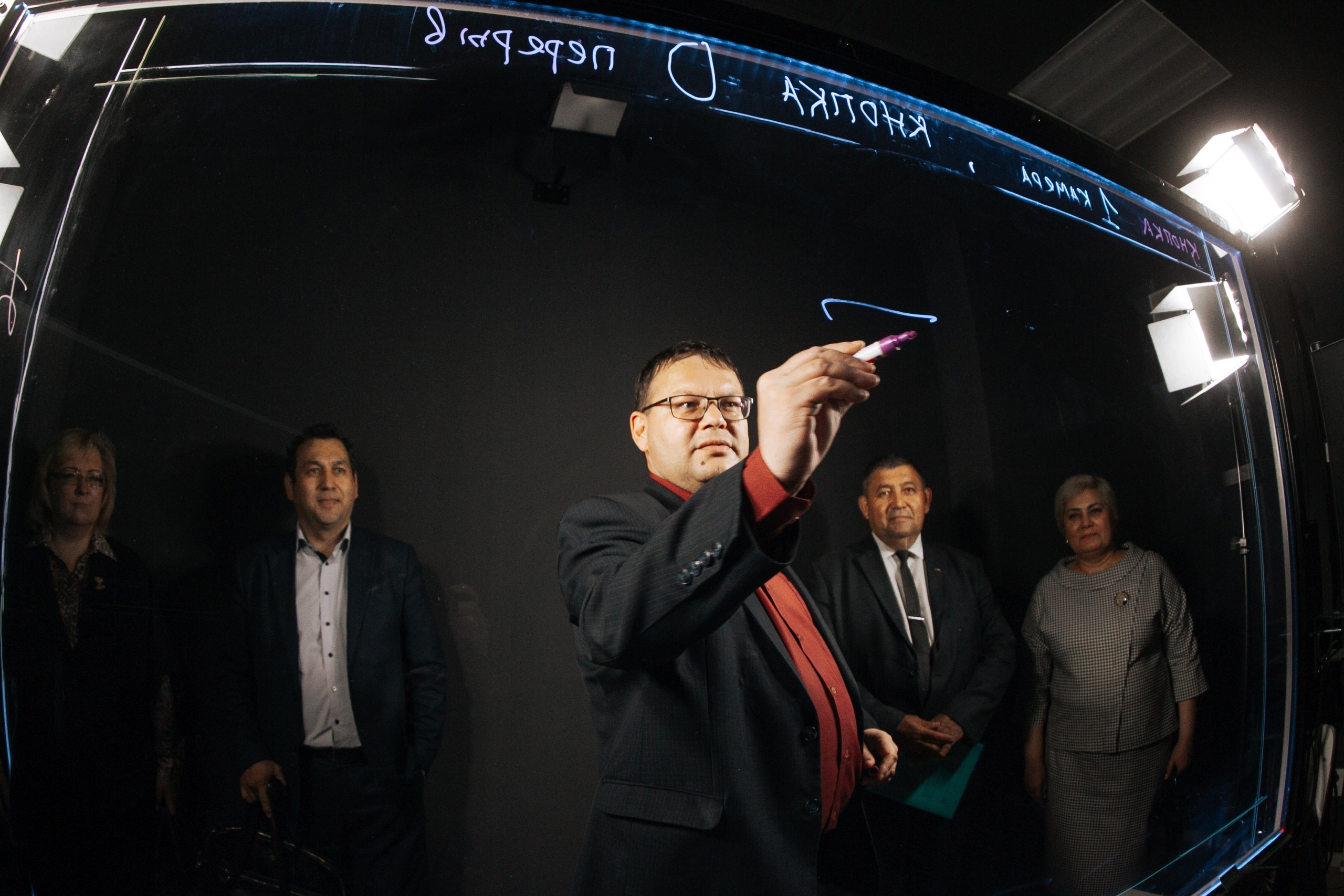 Директор межфакультетского технопарка универсальных педагогических компетенций «Учитель будущего поколения России» Айдар Сайгафаров продемонстрировал гостям вуза возможности мультифункциональных мастерских. Также он отметил, что оснащение технопарка позволяет готовить учителей, применяющих в своей работе междисциплинарные знания, а также профессионально развиваться уже работающим педагогам.