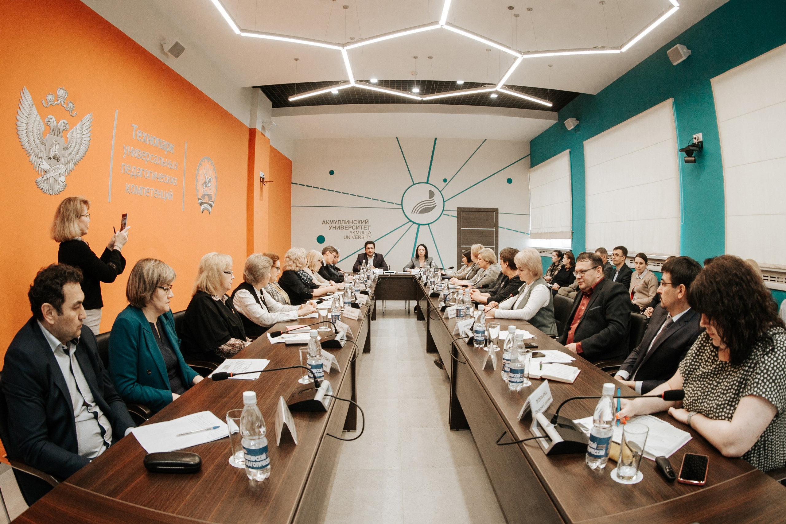 Далее в конференц-зале прошло совещание под председательством ректора Акмуллинского университета Салавата Сагитова. Заместитель главы Администрации Уфы Гуллярия Ялчикаева подчеркнула, что вопрос привлечения педагогических кадров в школы города является весьма актуальным. Также она отметила, что в ближайшие годы в Уфе появятся новые образовательные организации, потребность в учителях для которых планируется закрывать преимущественно новыми выпускниками педагогических направлений подготовки.