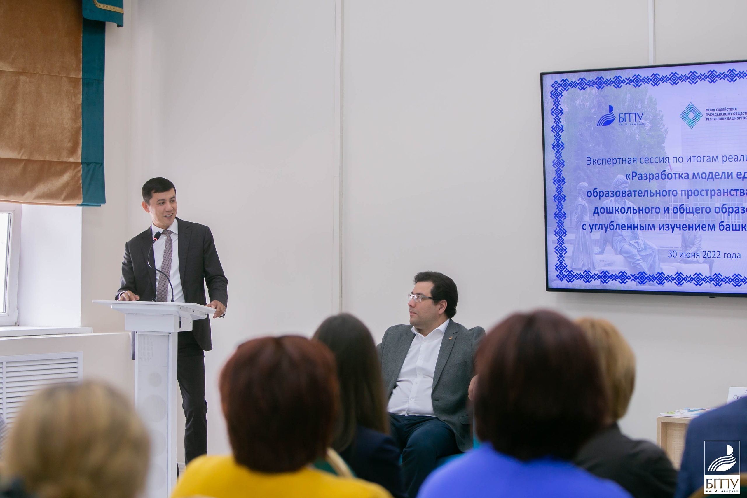 30 июня 2022 года в БГПУ им. М. Акмуллы состоялась экспертная сессия по итогам проекта «Разработка модели единого образовательного пространства организаций дошкольного и общего образования г. Уфы с углубленным изучением башкирского языка», реализуемого АНО Агентством содействия образованию, профессиональному росту и развитию Педагогическое содружество  при поддержке Фонда содействия гражданскому обществу Республики Башкортостан на средства гранта Главы Республики Башкортостан. Общая сумма гранта составила 4,5 млн. рублей.
