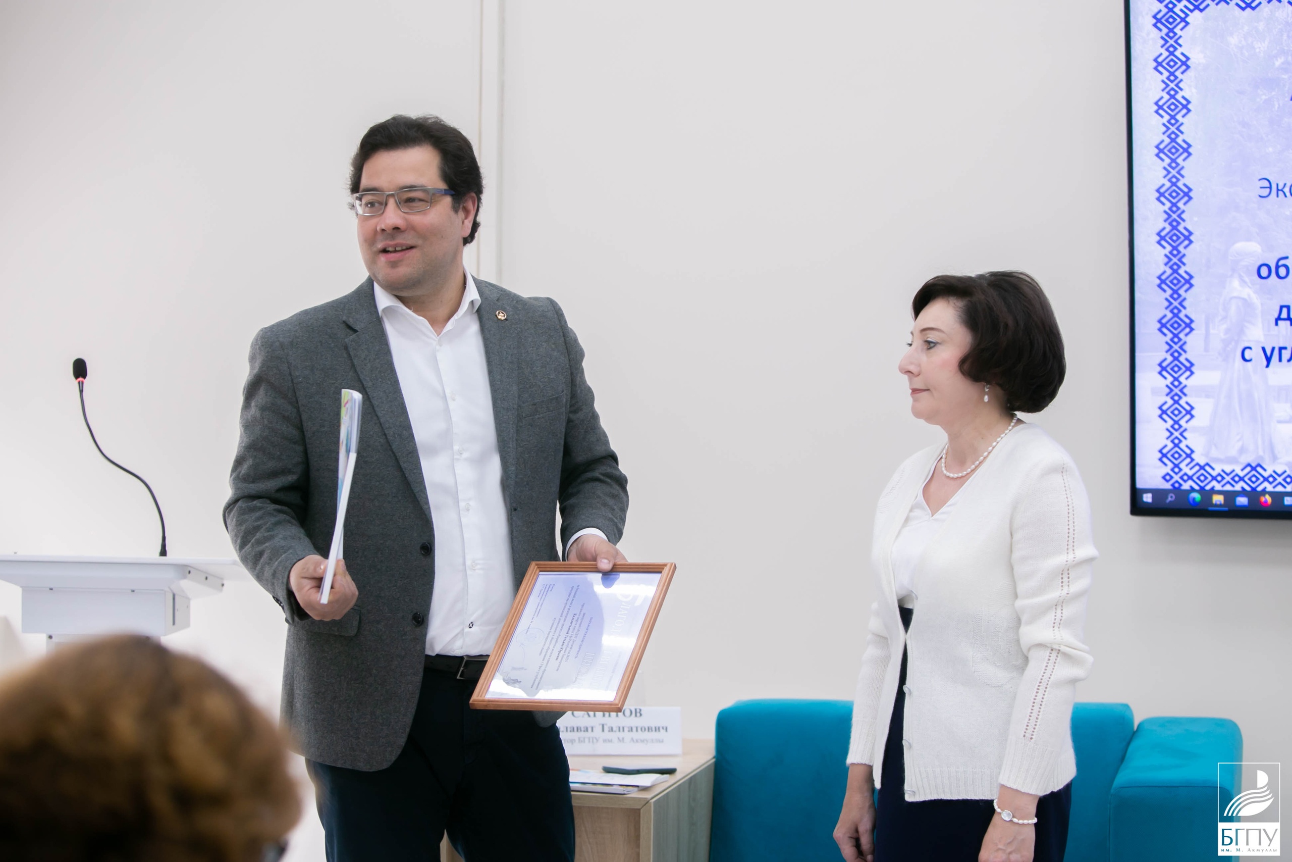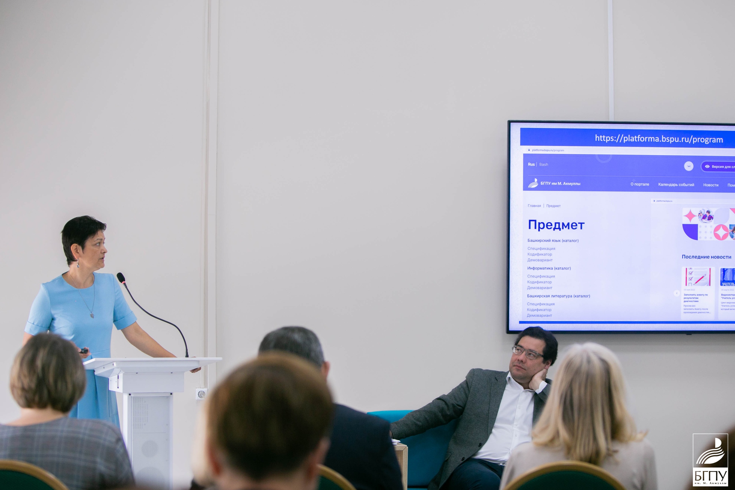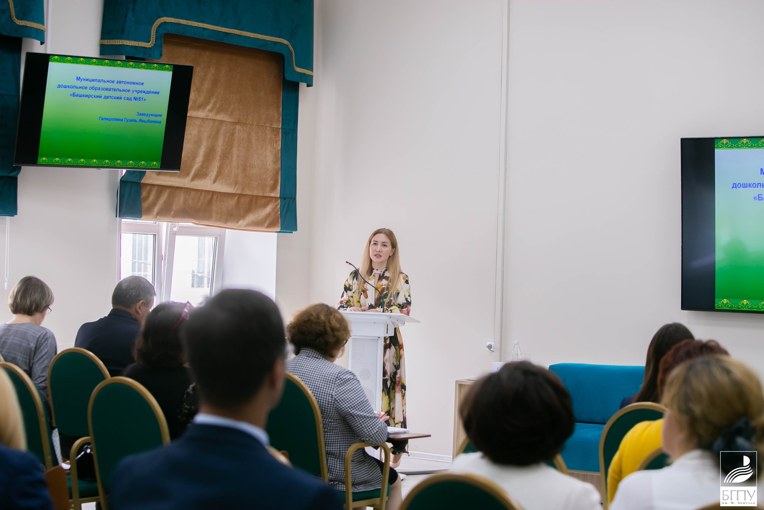 Заведующая «Башкирским детским садом №51» Гузель Галиуллина рассказала о преемственности в системе «Башкирский детский сад №51– Башкирская гимназия №158». Директор Института физики, математики, цифровых и нанотехнологий  Азат Юсупов выступил с докладом об апробировании проекта «Наставничество» в «Башкирском лицее №2».