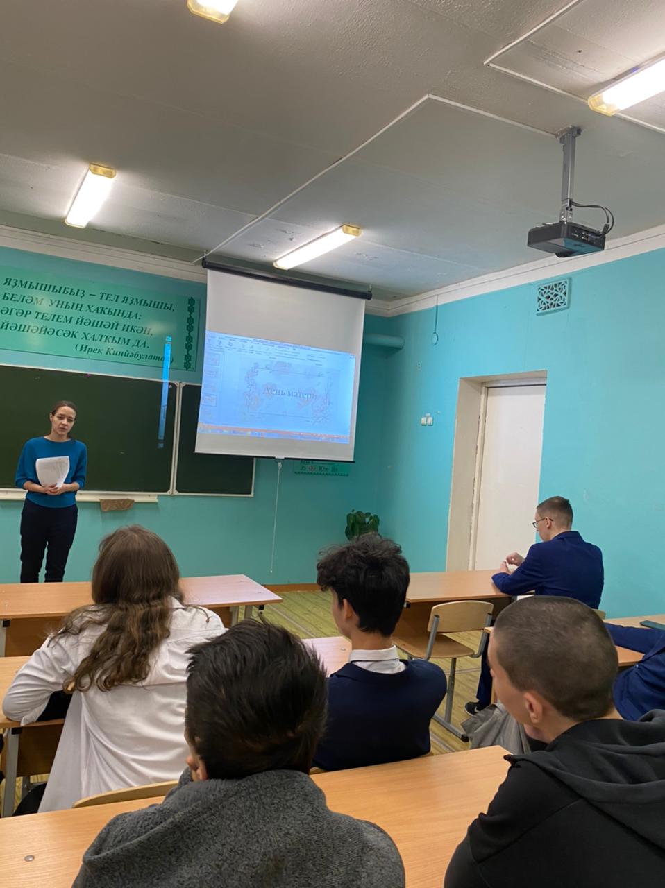 14 ноября 2022 года студенты провели внеурочные занятия в этих образовательных организациях на тему «Многообразие языков и культур народов России», рассказав о региональных особенностях многоязычия Республики Башкортостан, о необходимости уважения ко всем народам, населяющим нашу планету. «Материнский подвиг» - это тема бесед, которые проводили студенты 21 ноября 2022 года в этих же школах. В жизни каждого из нас самый главный человек - мама. Мама дает начало новой жизни, окружает добротой и заботой, наставляет на верный путь и оберегает от бед. Об этом говорили со старшеклассниками будущие учителя, обращаясь к литературному материалу, который обладает большим воспитательным потенциалом. Эти мероприятия состоялись в рамках педагогической практики, работу будущих филологов положительно оценили учителя. Также студенты-практиканты, затронув тему выбора будущей профессии, познакомили будущих абитуриентов с образовательными программами Института филологического образования и межкультурных коммуникаций.