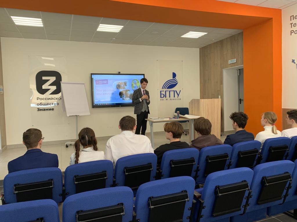 14 апреля 2023 года в Технопарке универсальных педагогических компетенций БГПУ проходил внутривузовский этап Всероссийского студенческого конкурса "Учитель будущего поколения России". Учащиеся психолого-педагогического класса Башкирского лицея №2 были приглашены для участия в конкурсных испытаниях студентов, проводящих с ребятами цикл классных часов «Разговоры о важном». Ученики 10 класса не просто отвечали на вопросы, но и старались поддержать конкурсанта и очень за него переживали. Такие мероприятия осуществляют преемственность в системе «школа-вуз», прививают любовь к педагогической профессии и интерес к Акмуллинскому университету.