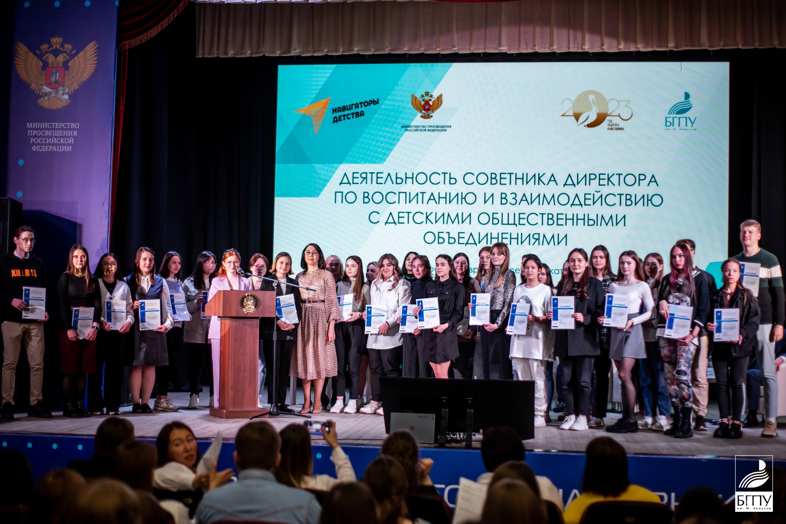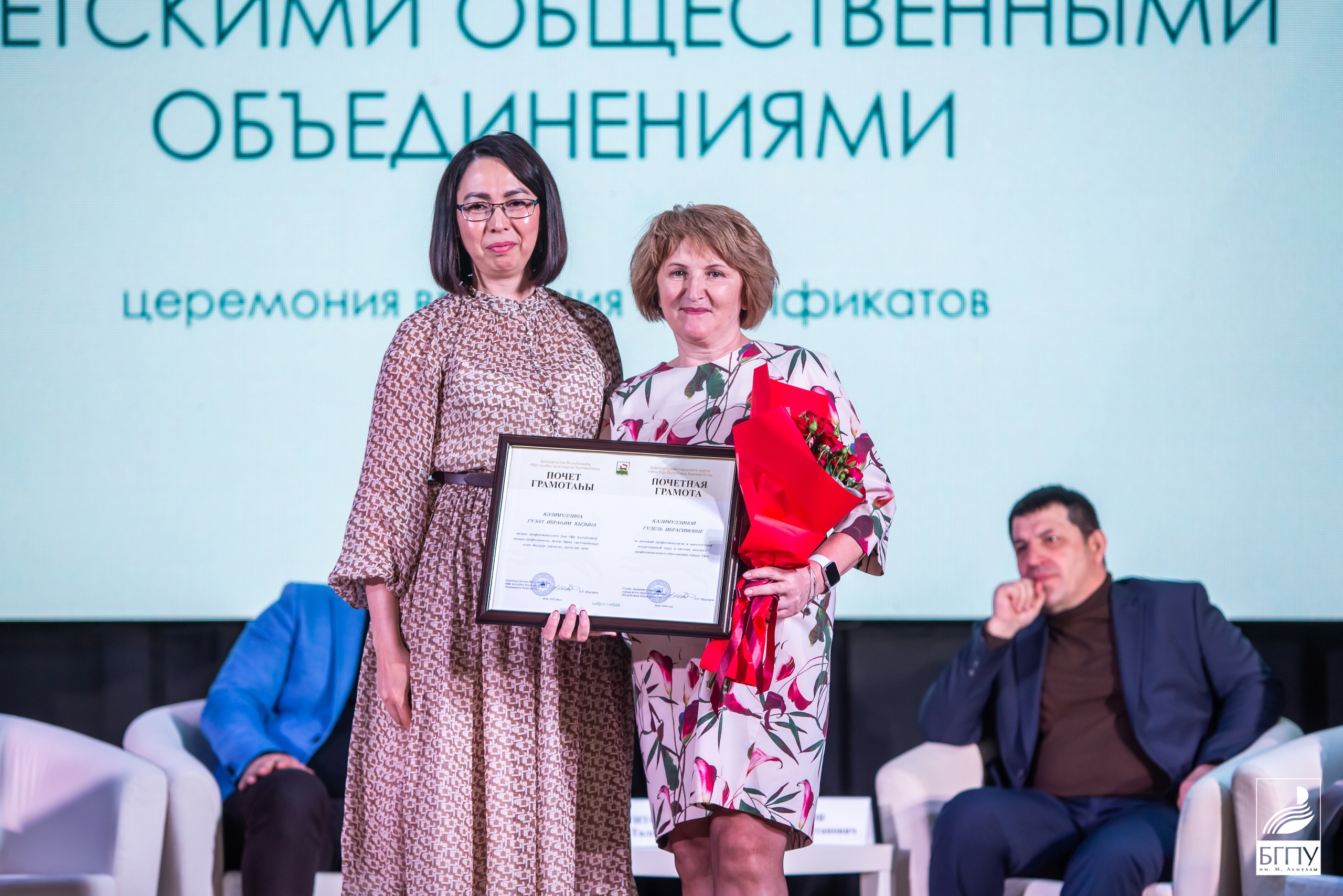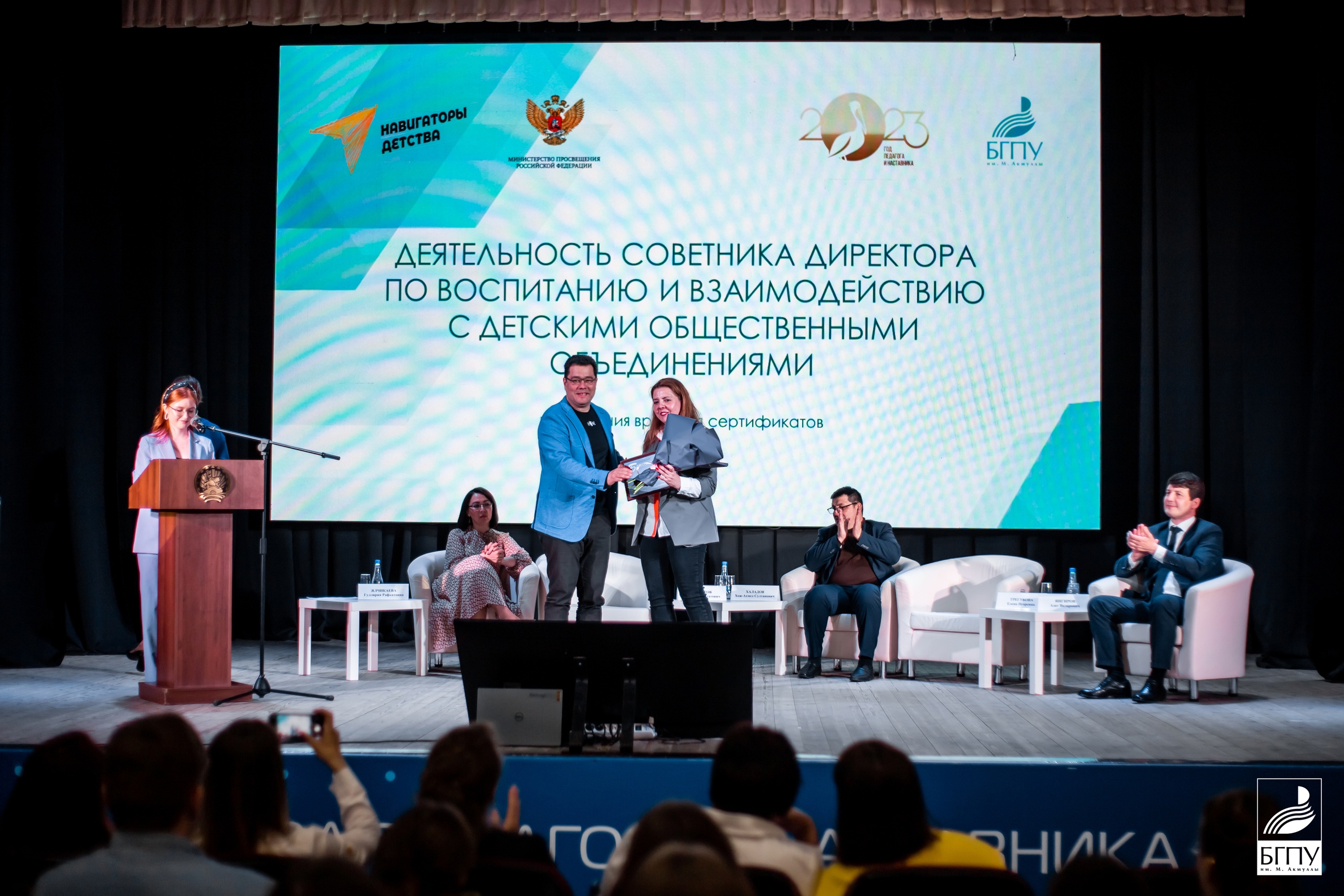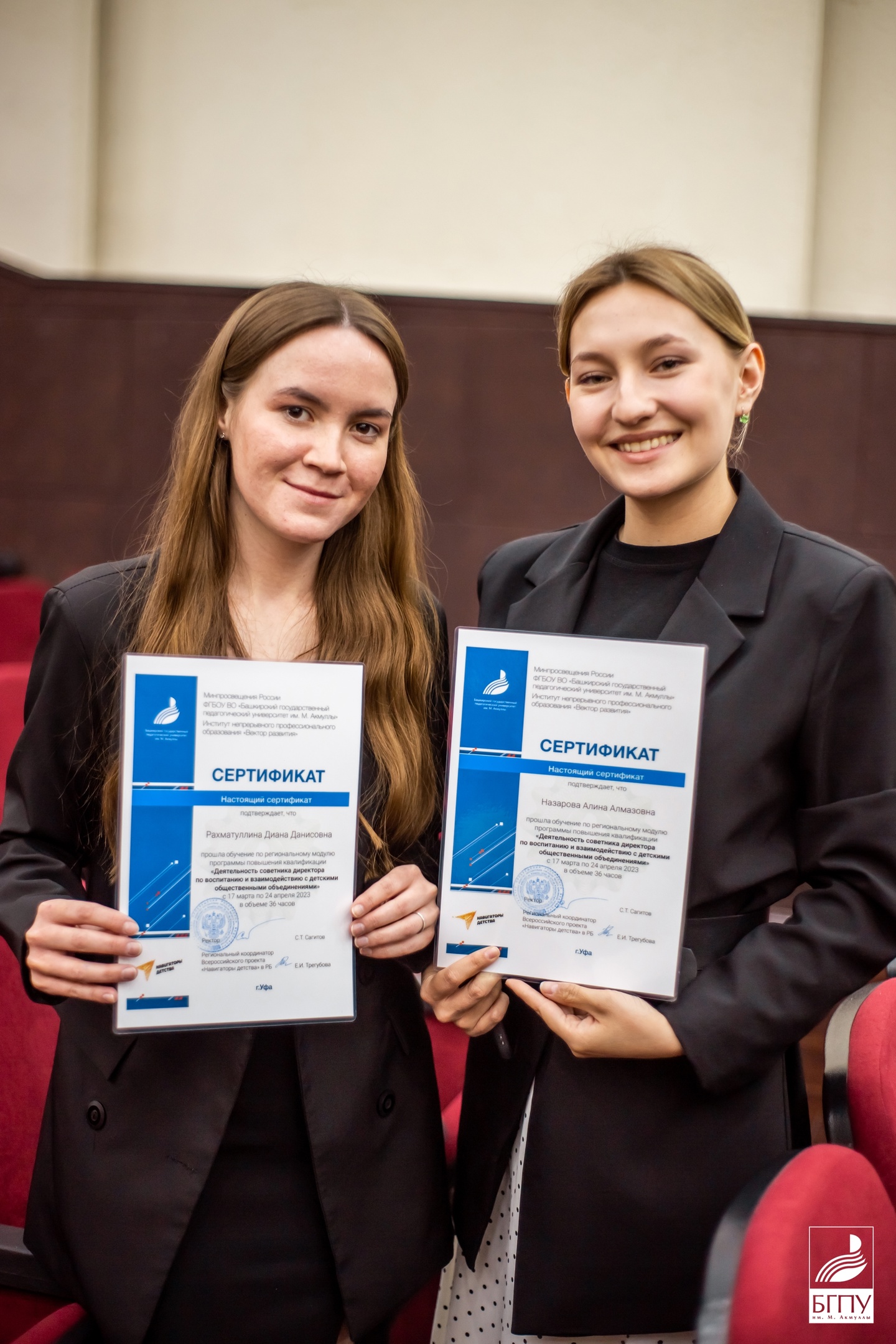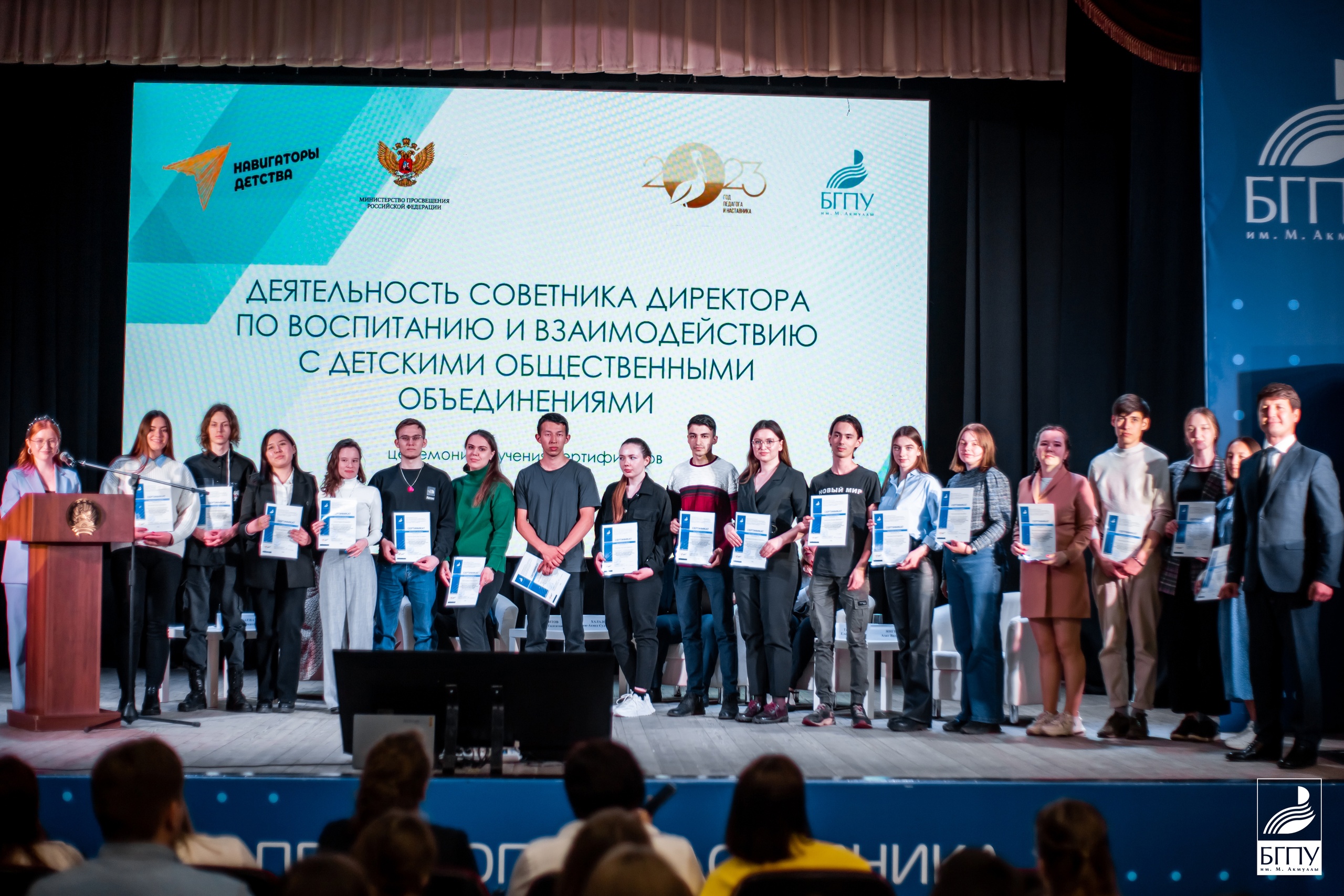 12 мая 2023 года в концертном зале Акмуллинского университета состоялось торжественное вручение сертификатов студентам, которые успешно прошли обучение по программе «Деятельность советника директора по воспитанию и взаимодействию с детскими общественными объединениями».