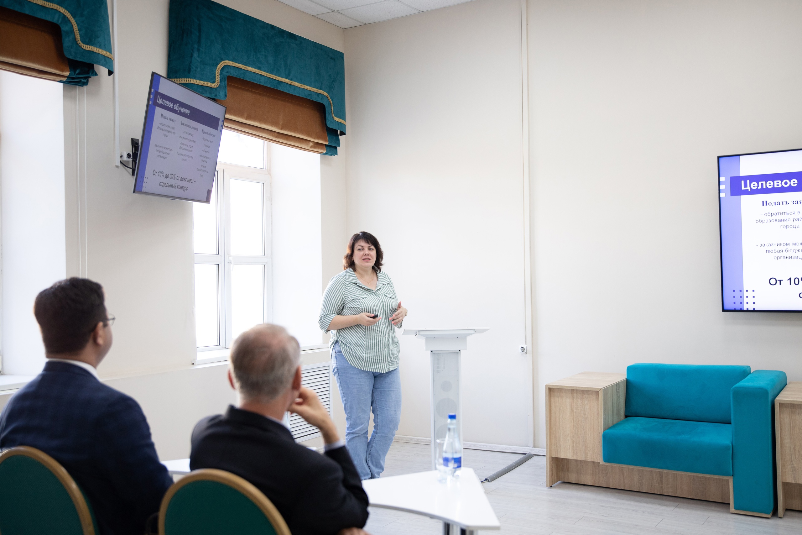 О целевом обучении студентов, об итогах приемной кампании-2023 рассказала начальник Управления рекрутинга и карьерного развития Наталья Илюшина. Работа с потенциальными «целевиками» идет целенаправленно в течение всего учебного года, в том числе с муниципалитетами и школами. Со школьниками ведется работа по подготовке к ЕГЭ, информационному сопровождению.