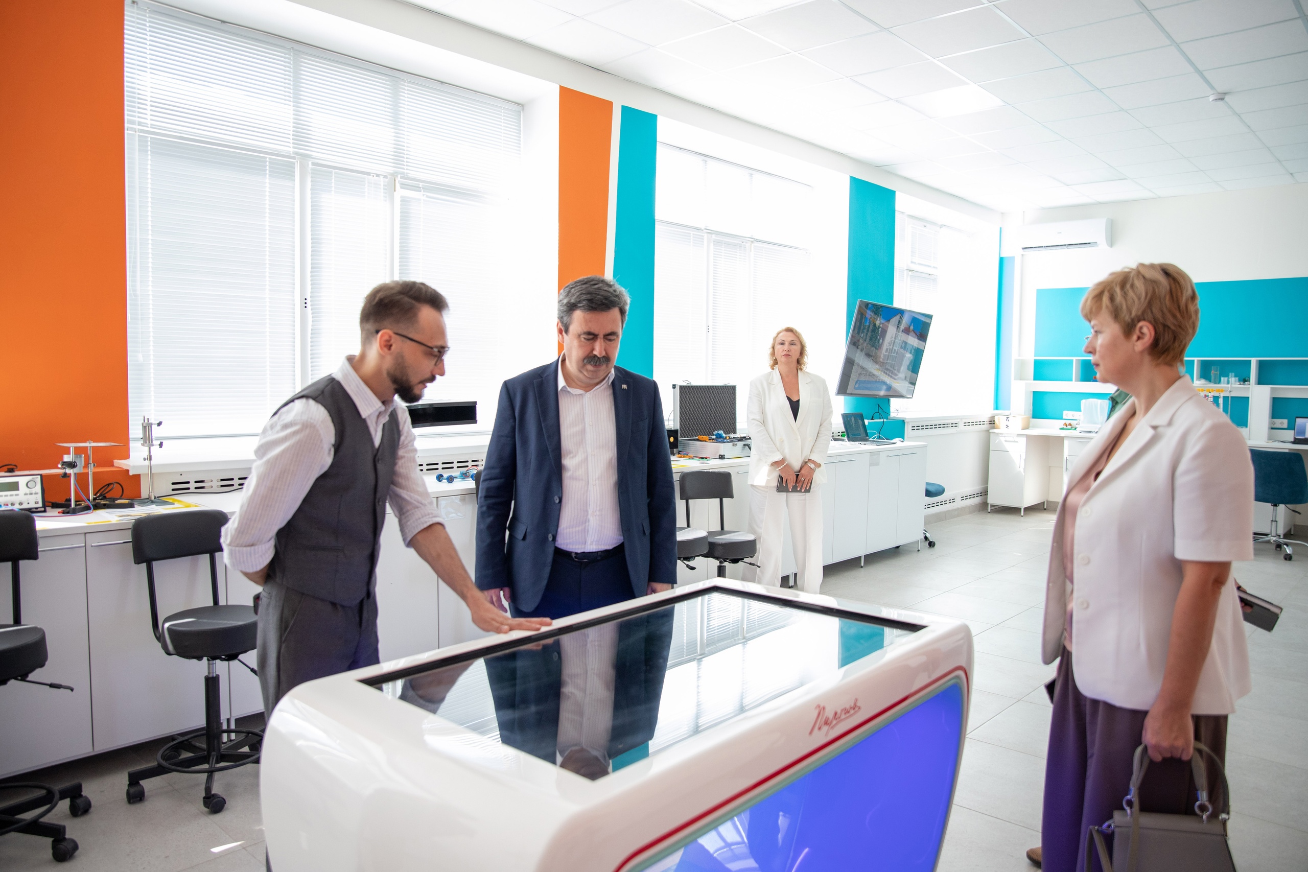 В Институте физики, математики, цифровых и нанотехнологий Анзор Езаов и Екатерина Мисостова посетили Кванториум имени В. Садовничего и Академию математики, ознакомились с кабинетом методики преподавания физики имени Эдуарда Хамитова.