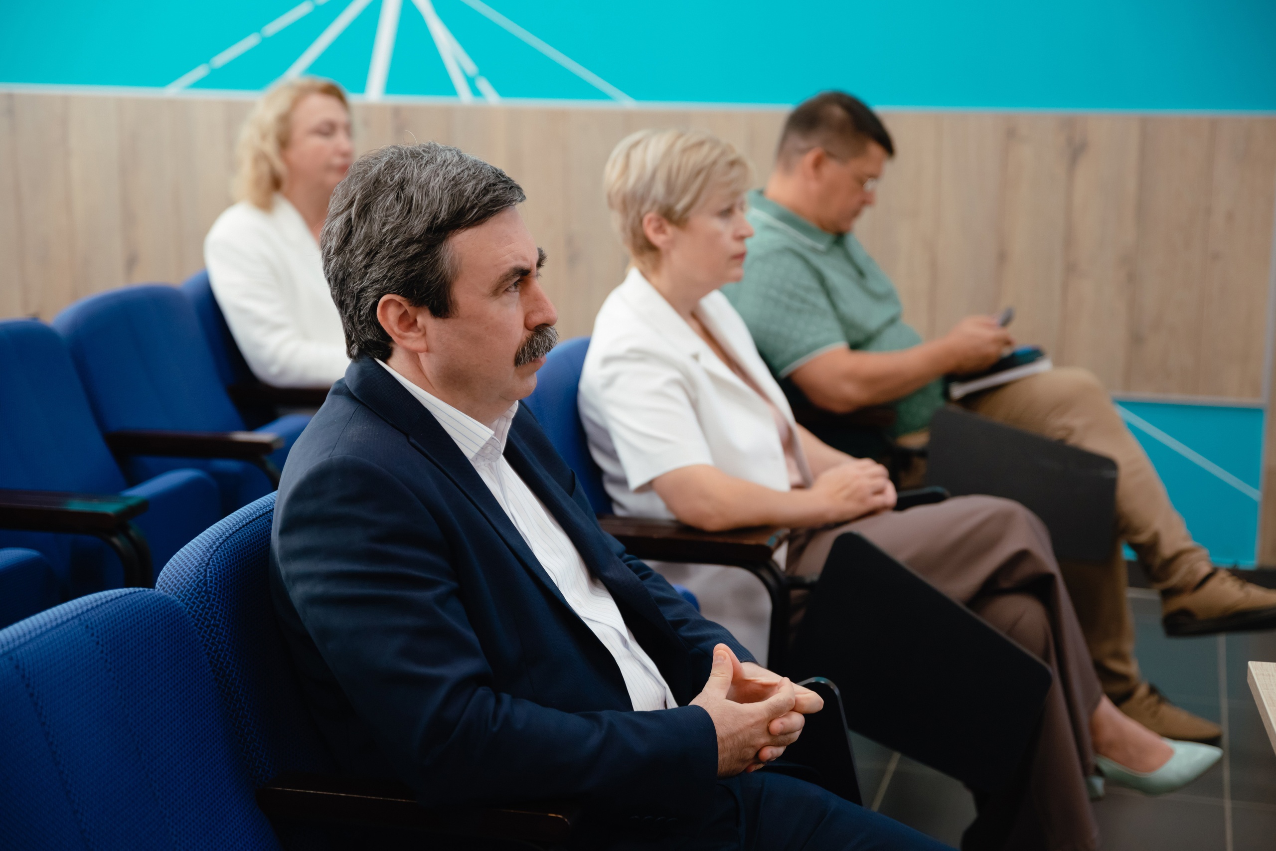 Директор Технопарка универсальных педагогических компетенций Сергей Переверзев ознакомил делегацию с площадками для научно-исследовательской деятельности студентов, школьников и педагогов, которые предоставляет Технопарк.