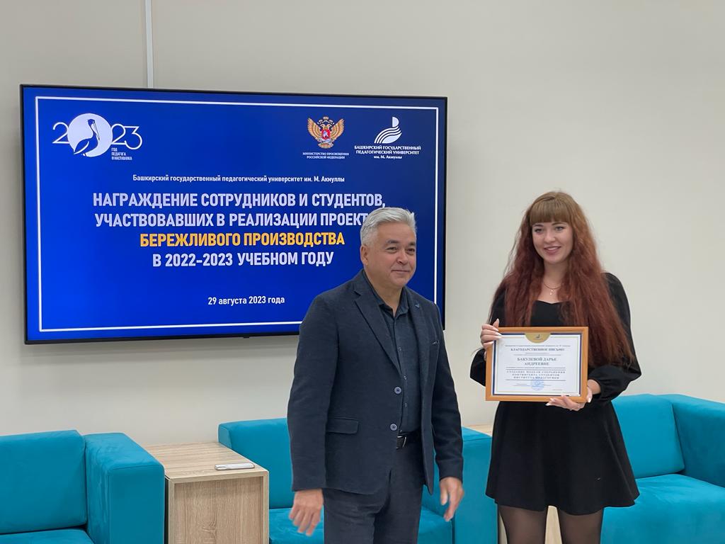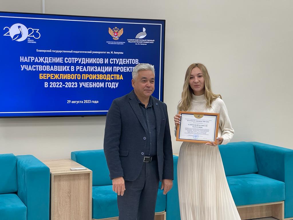 29 августа в преддверии начала нового учебного года в Башкирском государственном педагогическом университете имени М. Акмуллы состоялась церемония награждения сотрудников и студентов вуза, участвовавших в реализации проектов бережливого производства в 2022-2023 учебном году.