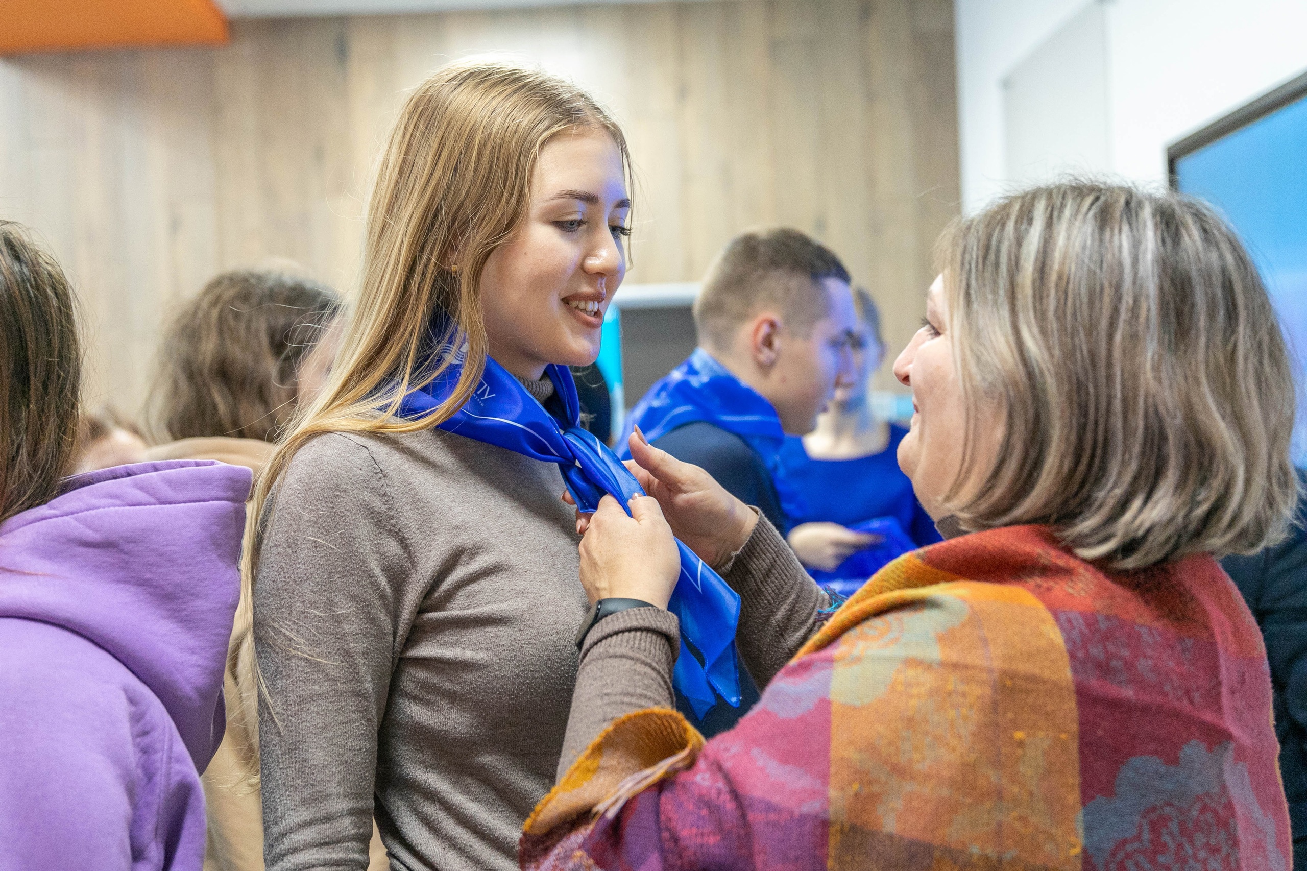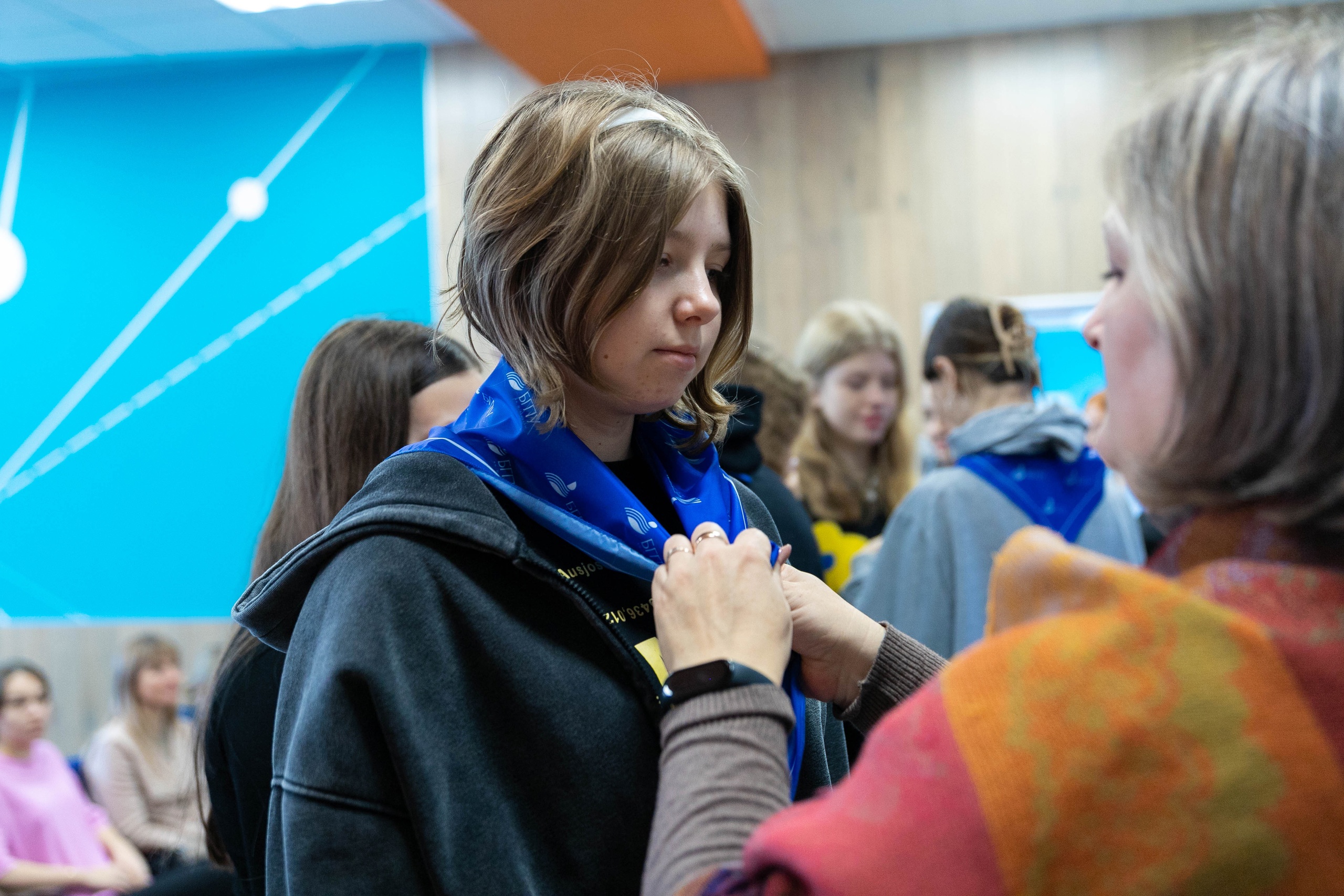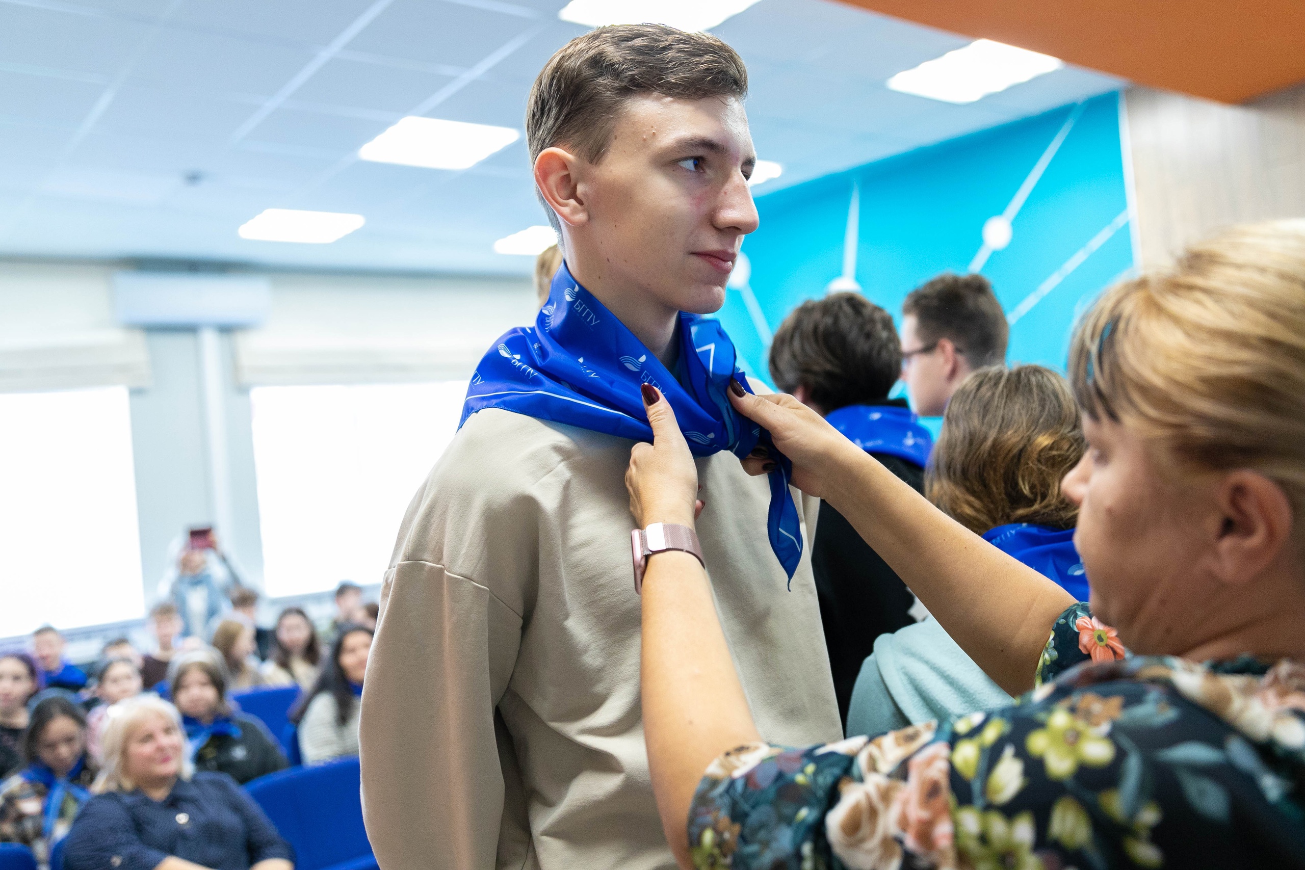 По традиции на церемонии открытия школьникам из ЛНР и ДНР повязали галстуки с символикой БГПУ им. М. Акмуллы.