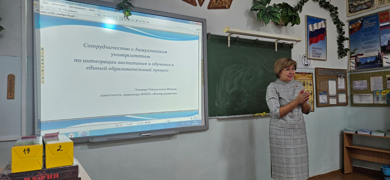 13 ноября 2023 года в  неформальной обстановке прошел педсовет «Сотрудничество с Акмуллинским университетом по интеграции воспитания и обучения в единый образовательный процесс» в Центре образования № 10 города Уфы. Заместитель директора  Института непрерывного профессионального образования Акмуллинского университета Минюк Эльвира в беседе  с педагогами рассказала о задачах вуза и школы,  алгоритме взаимодействия и приоритетных  направлениях  сотрудничества. Она отметила  необходимость  совместной разработки воспитательно-образовательной траектории школы, практико-ориентированных мероприятий для педагогов, учащихся и родителей.  Говорилось и об итогах прошедшего учебного года, о проведенных  мероприятиях, приводились  конкретные  показатели совместной деятельности, характеризующие учебно-воспитательную работу школы в целом. Также  подробно было рассказано  и о результатах диагностики профессиональных компетенций. Эльвира Гиндулловна обозначила ключевые направления взаимодействия университета и школы в сфере обучения и профориентации, описав  возможности, которые предоставляет БГПУ педагогам и школьникам.