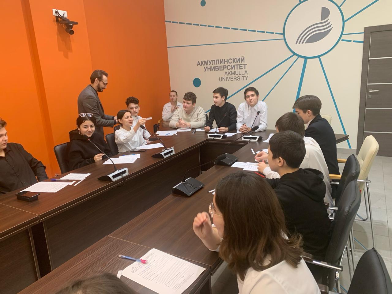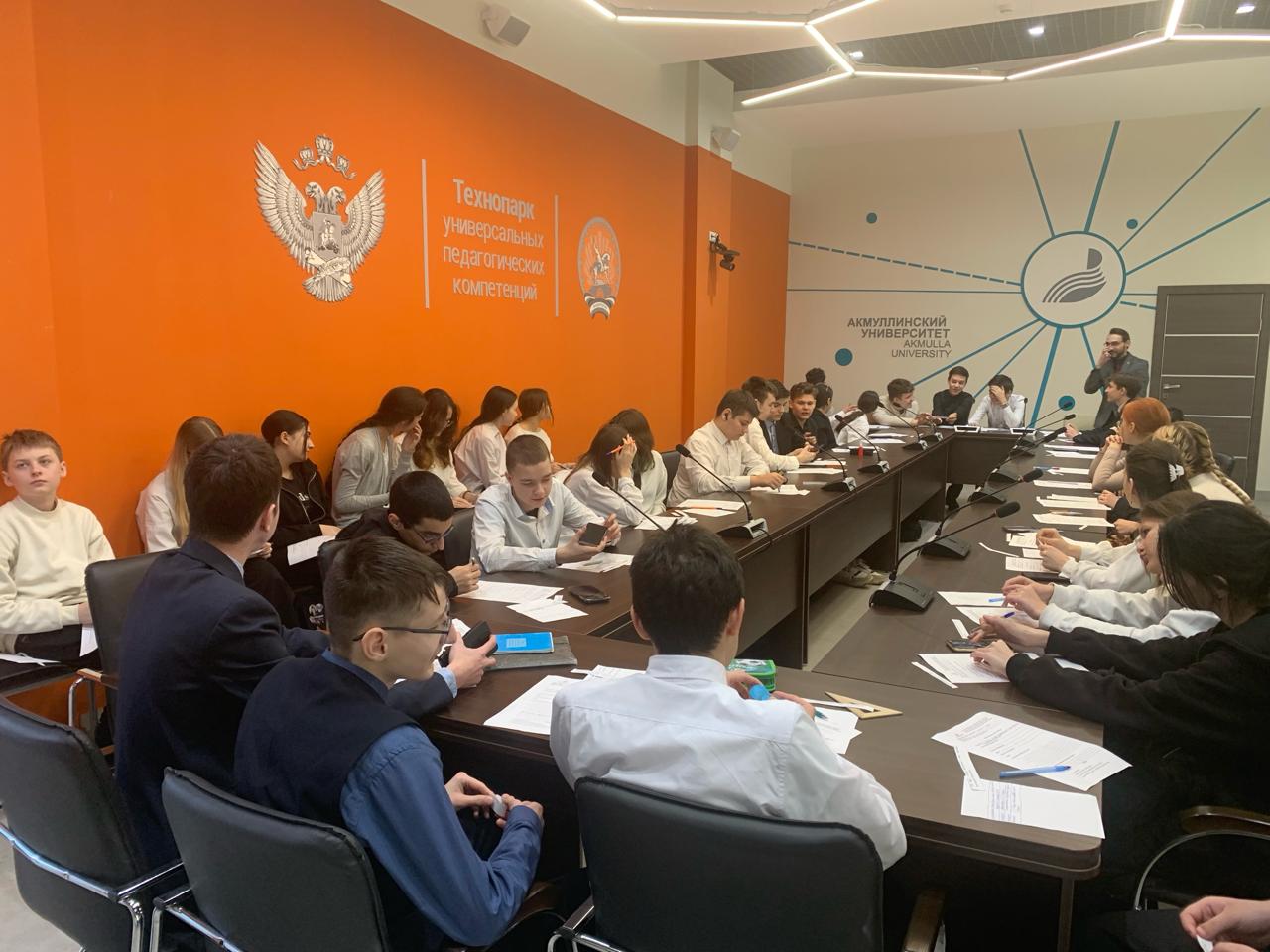Плановые занятия Детского лектория «Достижения России: прошлое, настоящее, будущее!» состоялись в Технопарке универсальных педагогических компетенций  Акмуллинского университета для  психолого-педагогических  классов  базовых школ:  7 февраля  2024 г. — для учащихся 10 класса школы № 22, 9 февраля — для учащихся 8, 10 классов Центра образования № 10. В начале учебного года базовые школы  сами определили  классы  для реализации практико-ориентированного модуля Профминимума (продвинутый уровень) на базе Технопарка, даты для реализации модуля и время проведения занятий. В течение года по средам реализуется этот совместный проект. На очередном занятии  ребята получили индивидуальные рабочие листы  юного лектора с формулировками  темы, цели и объекта исследования. Далее учащимся было предложено  вспомнить интересные факты по заданной теме и обобщить имеющийся материал.  Ребятам понадобились умение быстро реагировать на задание, оперировать  собранным  материалом, выступать перед аудиторией.  Учащиеся получили и домашнее задание: по предложенному плану подготовить и составить текст лекции-выступления, в котором  необходимо обозначить актуальность темы и отразить выводы по теме.