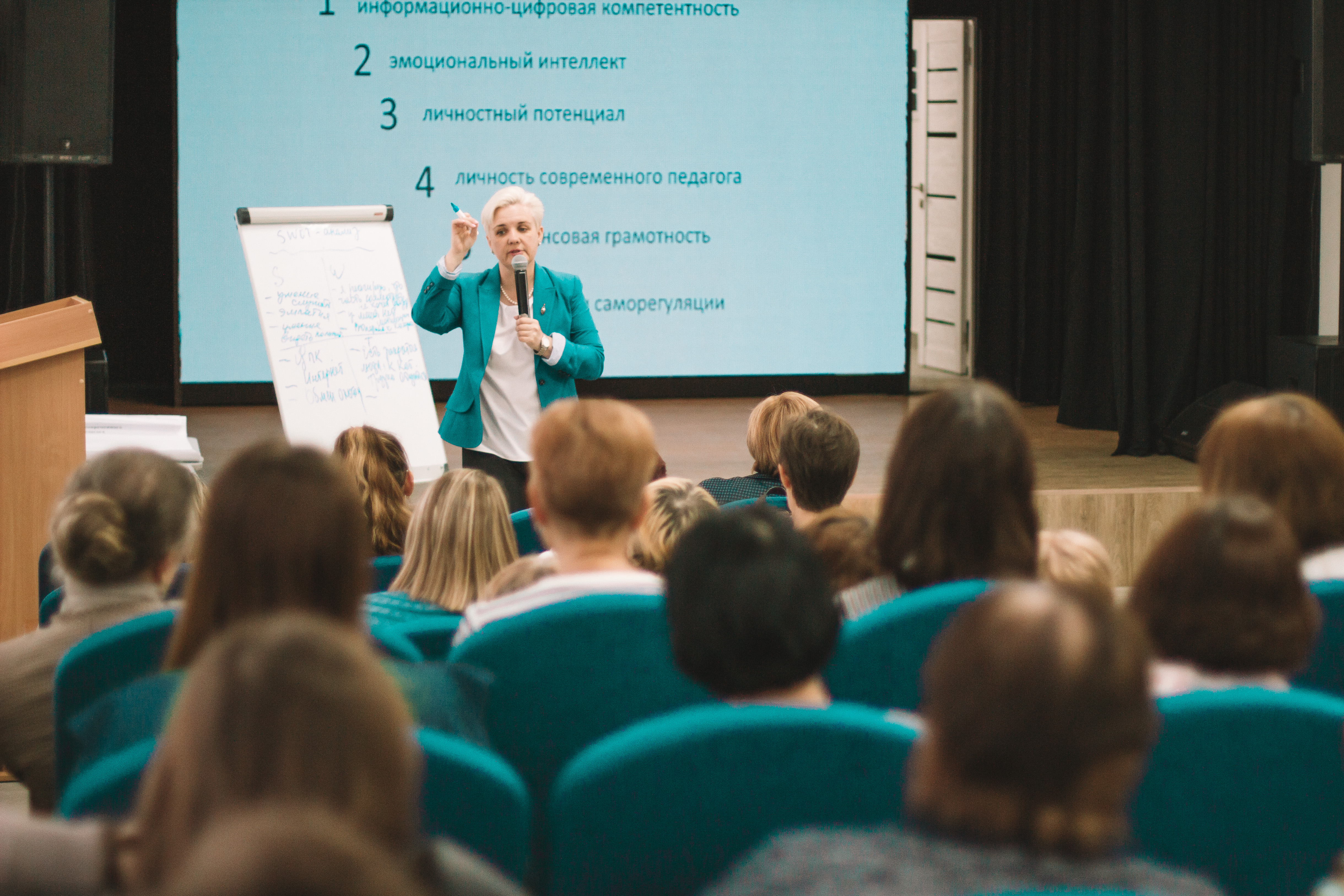 Руководитель центра Нина Набиулина рассказала о деятельности образовательного кластера, о возможностях занятий по дополнительным образовательным программам. В рамках педсовета для учителей была проведена экскурсия по центру. Нина Геннадьевна познакомила с современными тенденциями личностного развития, требованиями к  профессиональным навыкам педагога,  компетенциями современного учителя,  а также провела SWOT-анализ личных возможностей педагога.
