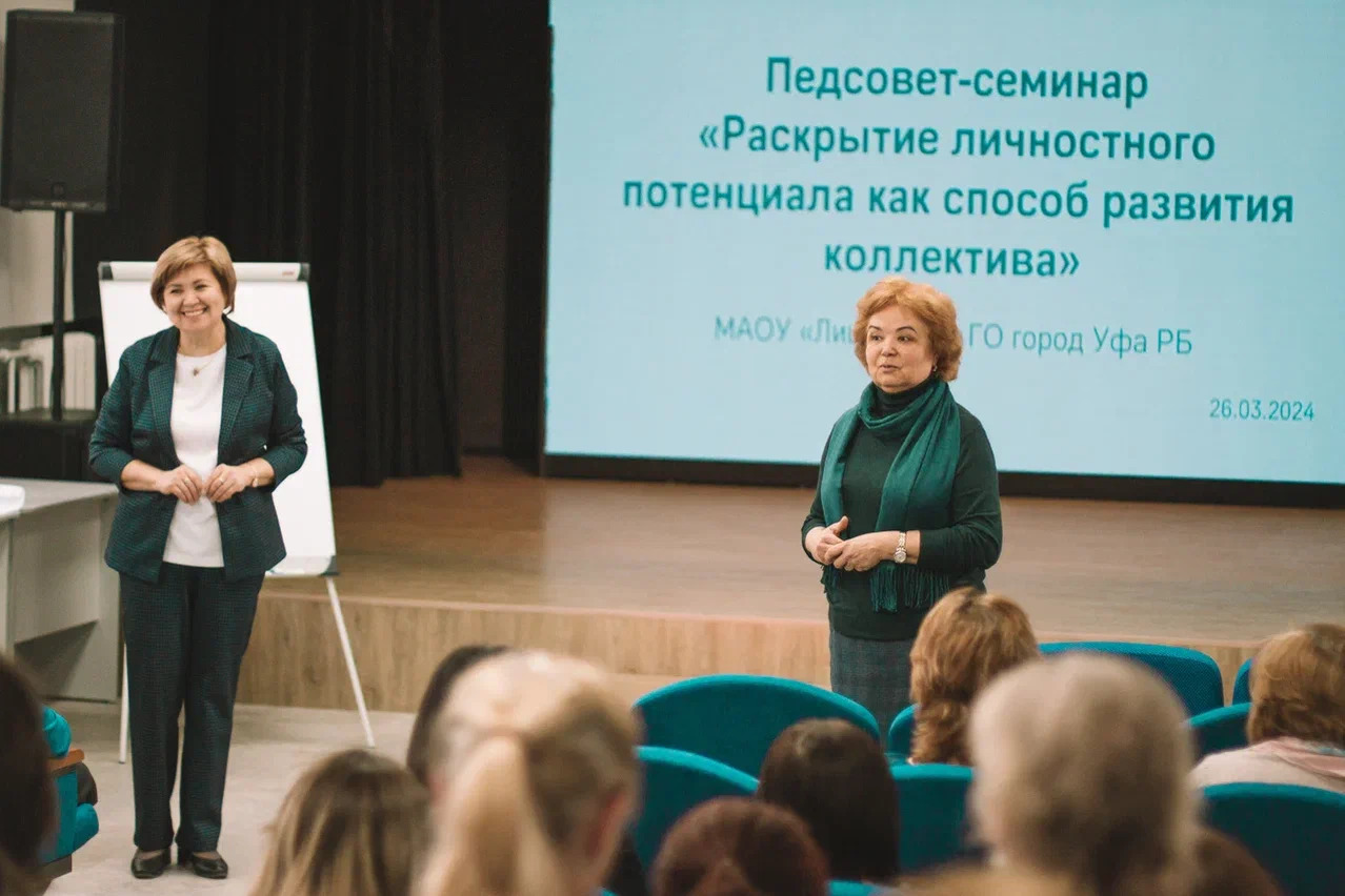 Педсовет-семинар  «Раскрытие личностного потенциала  как способ развития коллектива» прошел в  Центре педагогических компетенций  Акмуллинского университета для педагогов лицея № 5 Уфы.