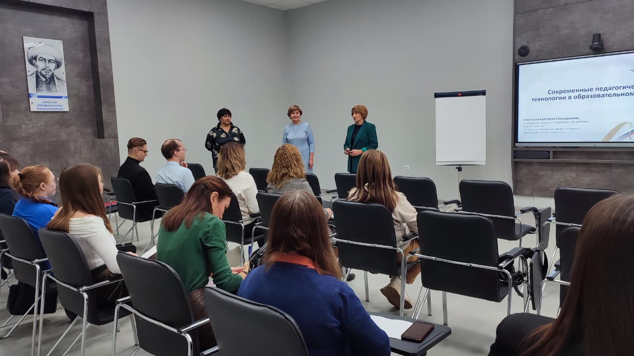 Образовательное  мероприятие «Методический мост: методическая работа — ключевое звено в работе ОО» для руководителей школьных методических объединений базовых школ состоялось 28 октября 2024 года в Институте непрерывного профессионального образования «Вектор развития». В своем приветствии директор ИНПО Калимуллина Гузель подчеркнула, что динамичное развитие образования ведет к развитию профессиональных компетенций, повышению квалификации и переподготовке кадров.  Минюк Эльвира, заместитель директора ИНПО по работе с базовыми школами, отметила, что распространение передового педагогического опыта —  одна из задач Акмуллинского университета.   Бережная Светлана, руководитель Центра исследований и разработок в сфере качества образования,  на семинаре рассказала о компетенциях руководителя школьного методического объединения, функциональной грамотности педагогов и  формировании мотивации  педагогов к самосовершенствованию. Также она рассказала о  современных педагогических технологиях, применяемых  в образовательном процессе, значимости  предметно-пространственной среды  в развитии личности обучающихся.  Доцент кафедры охраны здоровья и безопасности жизнедеятельности Сафина Элина провела с педагогами  тренинг на развитие лидерских компетенций «Ведущий за собой». В завершении семинара состоялась  стратегическая сессия «Возможности педагогического анализа урока для профессионального роста учителя», показавшая  педагогам возможности подбора  критериев для проведения анализа содержания урока и деятельности учителя на уроке. Каждый присутствовавший имел возможность «прочувствовать» на себе новые форматы анализа уроков, проведения заседаний методических объединений, выстроить перспективный план работы и определить траекторию развития методической команды. Руководители  школьных методических объединений получили  все материалы  по теме семинара для работы с педагогами.