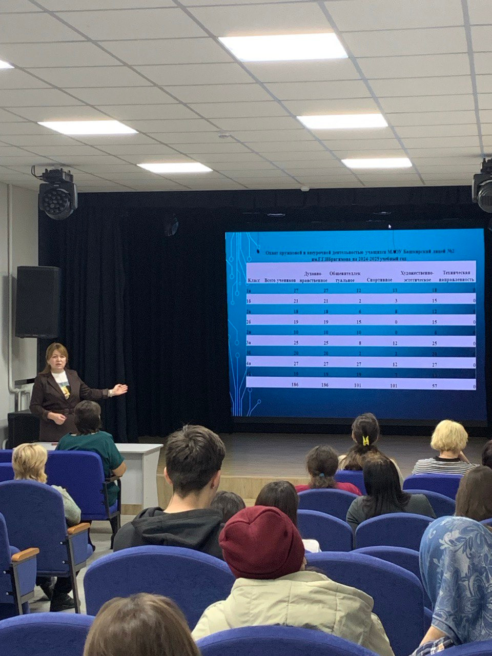 20 ноября 2024 года в Центре педагогических компетенций Акмуллинского университета состоялось собрание представителей родительских комитетов учащихся 1-4 классов МАОУ "Башкирский лицей №2" имени Гали Гизетдиновича Ибрагимова. Родителей приветствовала директор лицея Мурзагалина Миляуша. Она рассказала о внеурочных занятиях в лицее, привела статистику кружковой занятости учащихся начальной школы, из которой следовало, что ни один ученик начальных классов не занимается в кружках технической направленности. Заместитель директора Института непрерывного профессионального образования «Вектор развития» педагогического университета Минюк Эльвира рассказала о направлениях и формах сотрудничества Акмуллинского университета с базовыми школами, отметила значимость интеграции школьного и дополнительного образования для индивидуального развития ребенка и роли родительского сообщества в образовании.