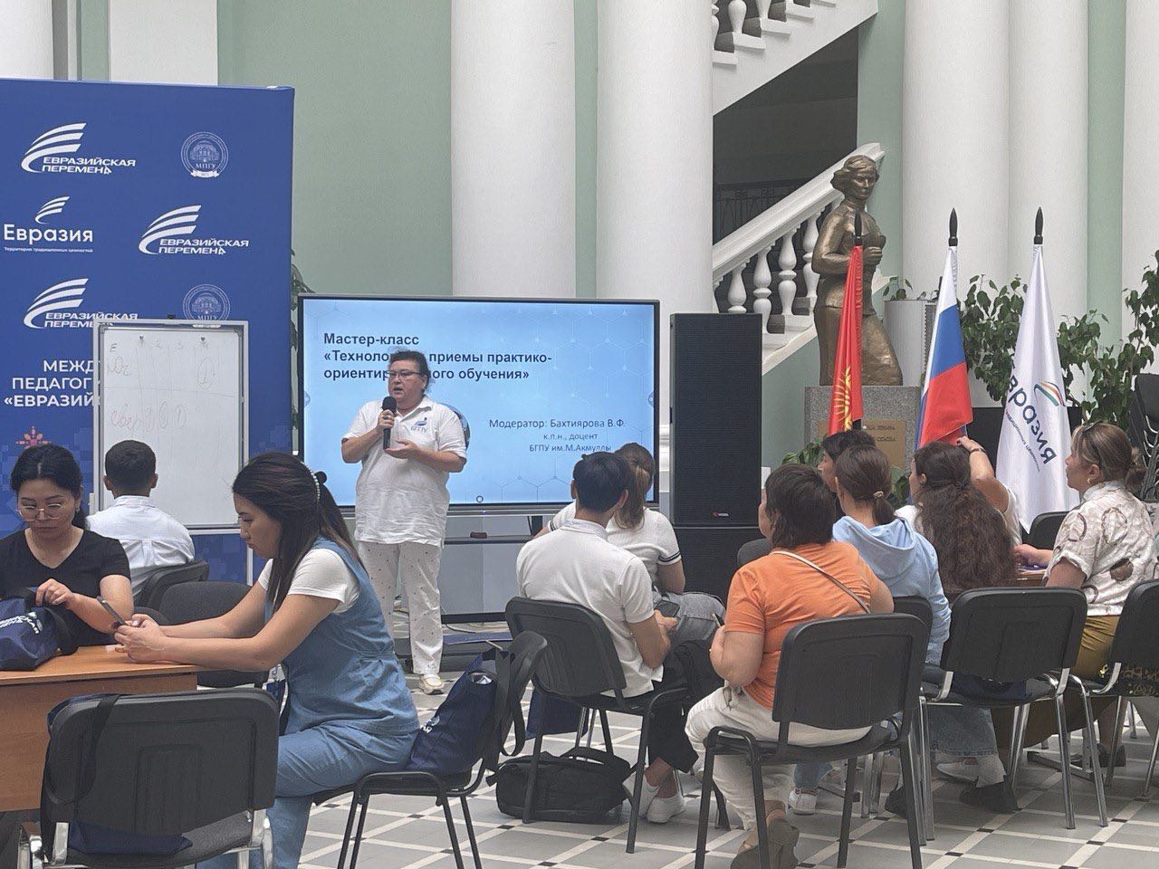 Одним из ключевых направлений Форума стала педагогическая мастерская единого евразийского образовательного пространства, реализуемая командой БГПУ им. М. Акмуллы. Программа направлена на формирование будущей команды тренеров-методистов, которые станут амбассадорами по внедрению единого евразийского образовательного пространства России и Кыргызстана.
