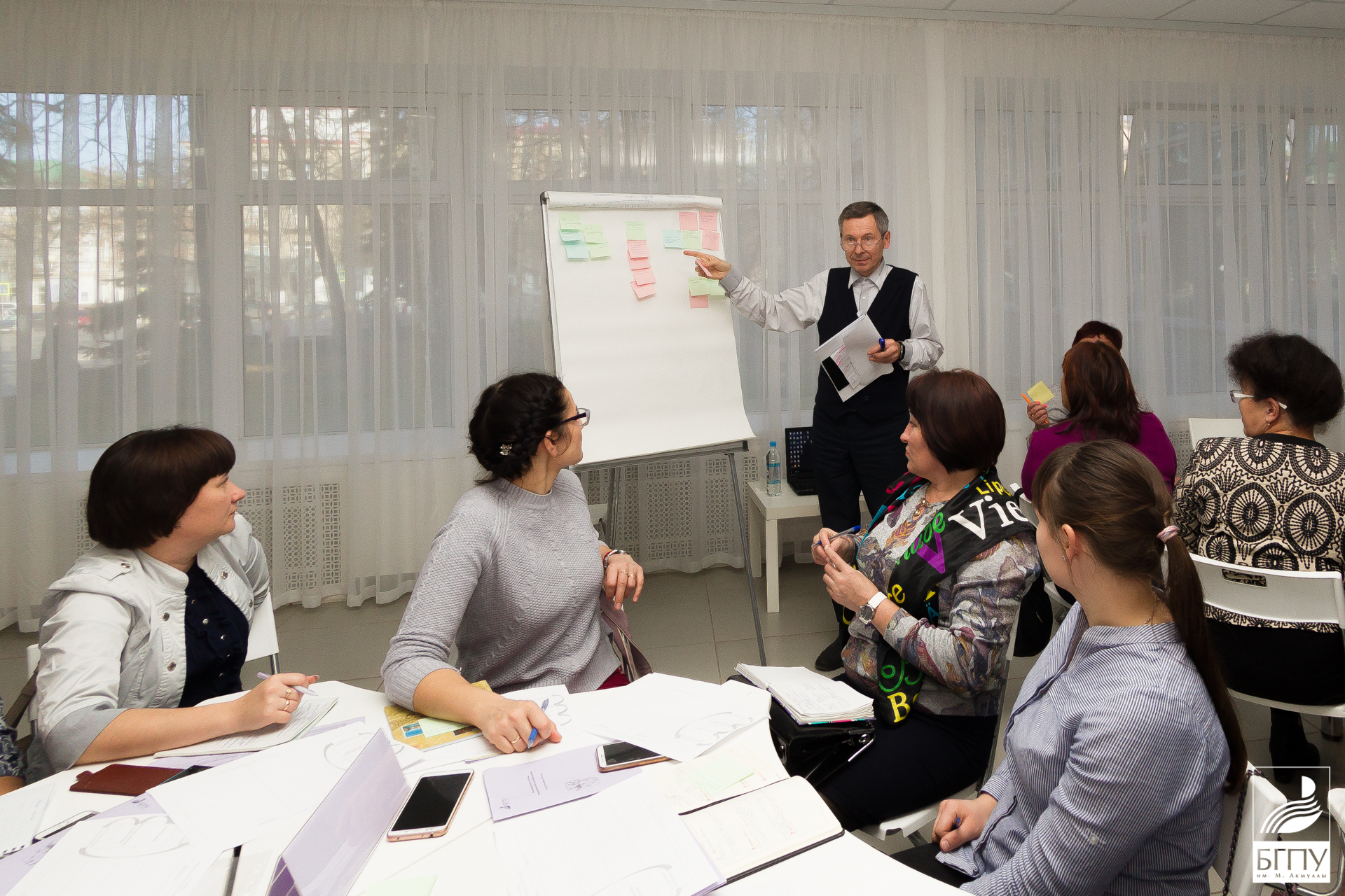 Надежда Сытина, заместитель заведующего кафедрой педагогики и психологии БГПУ им. М. Акмуллы, подробно рассказала об актуальных вопросах оценки качества образования. Формат семинара включил в себя работу по 4-м площадкам. Вместе с методистами и педагогами университета участники подробно изучали аспекты качества образовательного процесса и роль методиста в этом процессе.  Обсуждение проходило с применением метода «World cafe» (мировое кафе). Неформальное общение позволило университету получить интересные предложения и запросы от педагогического сообщества. Отработаны основные позиции, касающиеся качества образовательного процесса: активное целеполагание; совершенствование содержания образования; методы, формы, технологии образовательного процесса; результаты образовательного процесса и их оценка. Участники семинара смогли самостоятельно проанализировать себя на соответствие требованиям профессионального стандарта в области сформированности общепрофессиональных компетенций руководителя методической службы.