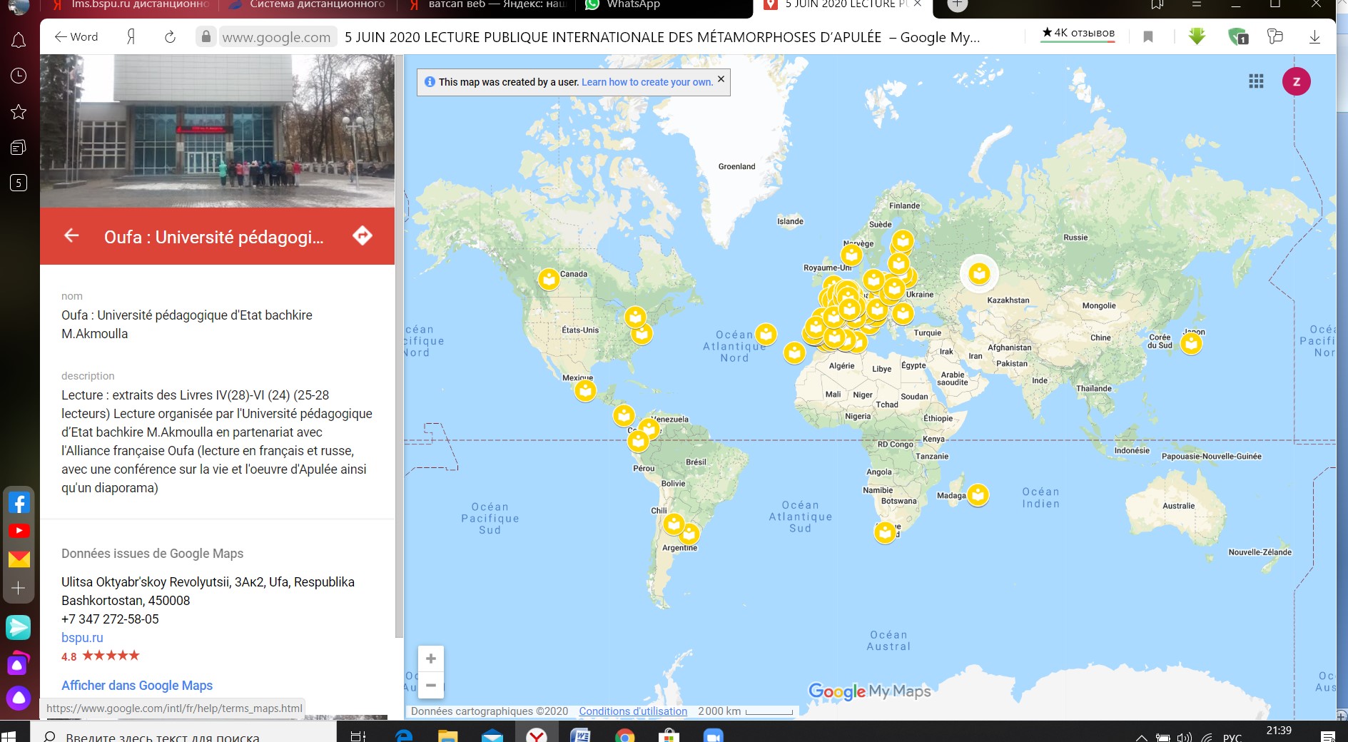 Ассоциация Европейского греко-латинского фестиваля (г. Лион, Франция) ежегодно проводит масштабные мероприятия с целью популяризации античного культурного наследия, их участниками становятся студенты, преподаватели университетов и колледжей, работники библиотек со всего мира. В этом году для публичных чтений на разных языках мира был предложен роман римского писателя Луция Апулея «Метаморфозы», организаторы получили заявки из более, чем 30 стран (виртуальная карта фестиваля 2020 года доступна по ссылке https://www.google.com/maps/d/u/0/viewer?mid=10bptOQIknhtwdLAUvplua4zGQ6KtdzWC&ll=20.423552275356815%2C13.098671700000011&z=2).