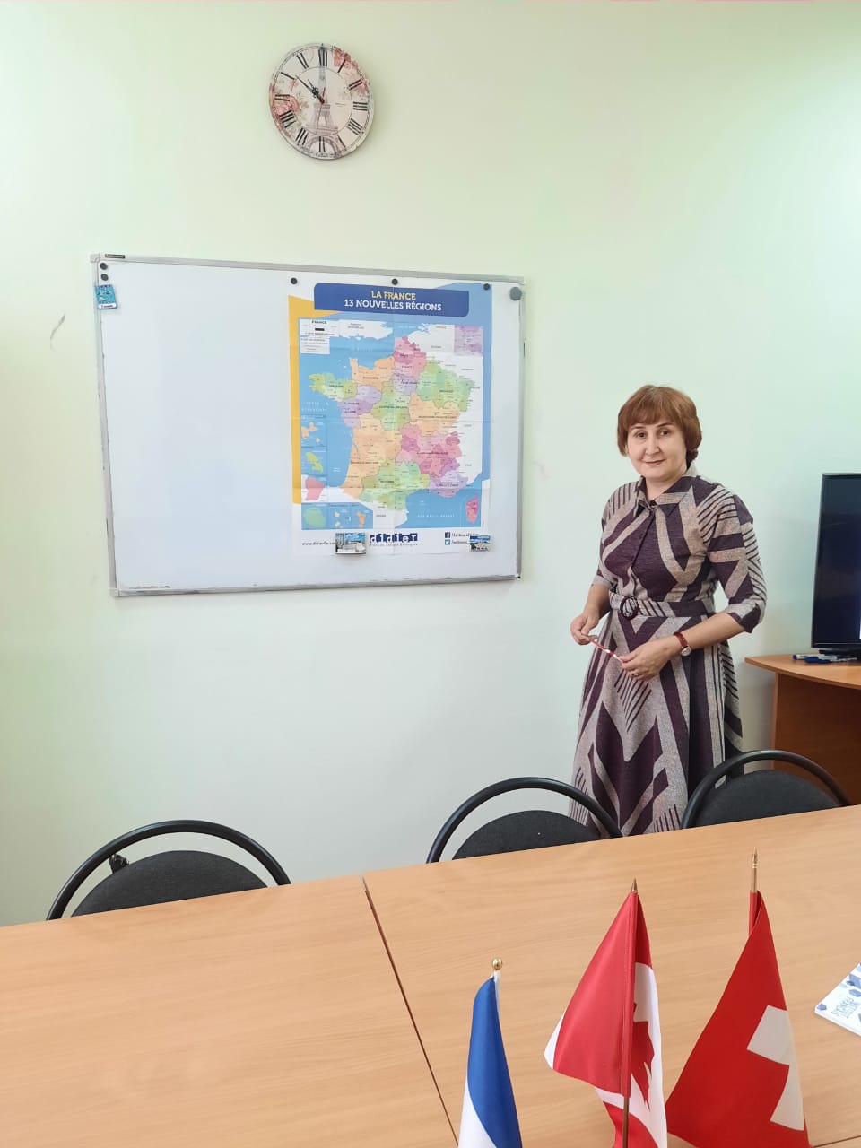 В каких странах говорят на французском языке? Сколько человек в мире говорит на этом красивейшем языке? В каких сферах деятельности и в каких международных организациях используется язык Мольера и Гюго в качестве официального языка или языка повседневного профессионального общения? Какие перспективы предоставляет владение французским языком? Как проходят занятия и внеаудиторные мероприятия по французскому языку в БГПУ им.М.Акмуллы? В каких международных проектах и программах принимают участие наши студенты? В каких отраслях работают наши выпускники? На эти и другие актуальные вопросы постаралась ответить ведущая мастер-класса.  Студенты 4 курса ИФОМК, изучающие язык Жюльет Бинош и Зинедина Зидана, рассказали на французском языке, что значит для них этот язык. Поскольку мастер-класс состоялся сразу после Международного дня учителя французского языка, студенты поздравили педагогов с праздником на французском языке и выразили свое восхищение их талантом прививать любовь к новому языку и искусством вызывать у обучаемых интерес к истории и культуре франкофонного мира.