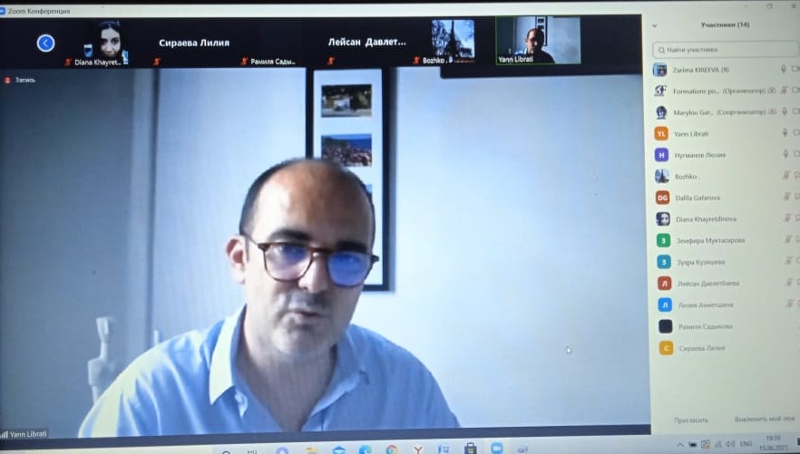 15 июня 2021 г. для слушателей программы краткосрочных курсов повышения квалификации «Проектирование образовательного процесса по французскому языку в рамках реализации ФГОС» (рук. доц. Р.Ф.Хасанова) по Zoom состоялся мастер-класс «Межкультурная коммуникация на уроке французского языка». Мастер-класс для наших слушателей провели партнеры Акмуллинского университета из образовательного центра Francophonia (г.Ницца): координатор образовательных проектов Валентина Борисова и методист по образовательным программам Марилу Гарино. Вначале педагогов из Башкортостана поприветствовал директор образовательного центра Francophonia Ян Либрати, который рассказал о миссии своей организации, о культурных и педагогических проектах.  Участники мастер-класса, выполняя в качестве учеников предложенные интерактивные задания, овладели эффективными приемами включения учащихся в диалог культур. Эти приемы и технологии позволяют обучающимся осознать проявления своей культуры и понять чужую культуру, увидеть общее и отличное. Кроме того, эти технологии – не только продуктивны, но и современны и привлекательны для обучающихся. Поскольку в онлайн мастер-классе, кроме наших учителей, приняли участие преподаватели французского языка и из других стран: Германии, Сербии, Италии, Португалии, Румынии и др., то наши коллеги имели возможность обменяться опытом и попрактиковаться во французском языке. Это бесценный опыт для наших учителей. Особенно для тех, кто долгое время не преподавал французский язык и планирует вернуться в профессию с сентября текущего года. Подобные встречи помогают снять психологический и языковой барьер.
